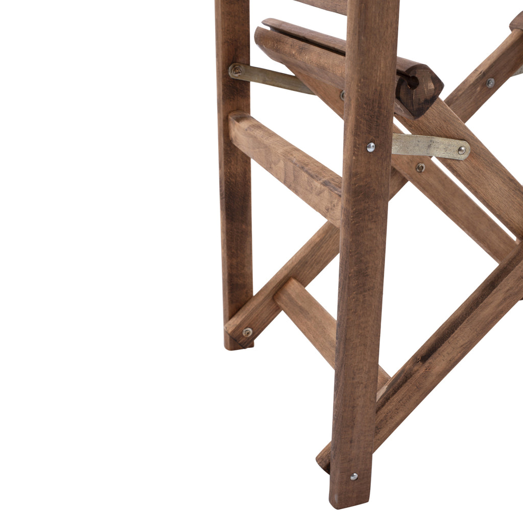 Режисьорско кресло рамка LEMNOS сгъваема, накисване. Изработен от подсилена рамка от 100% масивна букова дървесина в нюанс орех. Цвят на рамката: Орех Размери: 57x54x88.5H см. Височина на ръцете: 69 см. Височина на седалката: 49 см. Затворен: 24x54x89 см. Размери на седалката: 44,5х40 см. Подходящ за професионални помещения. Забележка: Продуктът е изработен от естествена масивна букова дървесина. Съществуващите пукнатини или тези, които могат да се образуват с времето, са част от естествената форма на материала и придават оригиналност и уникален дизайн на вашето пространство. По време на производствения процес съществуващите пукнатини се изглаждат и стабилизират с материал от същата дървесина. Поради това може да има цветови вариации и разлики в размерите на продукта поради размерите на обработената дървесина. Това не са дефект на продукта.
