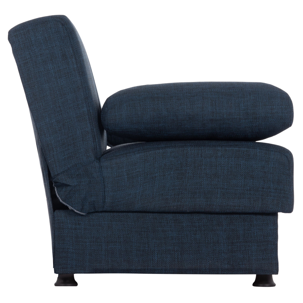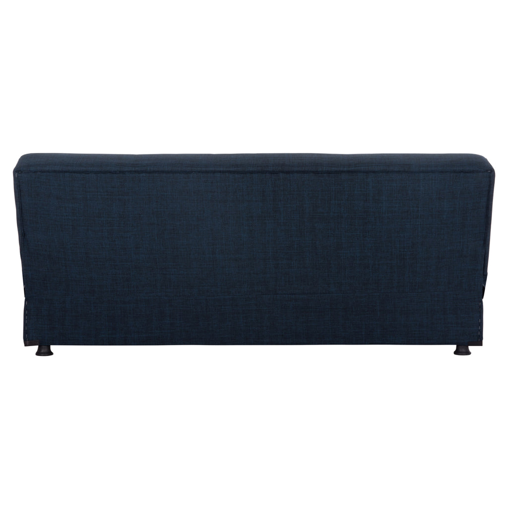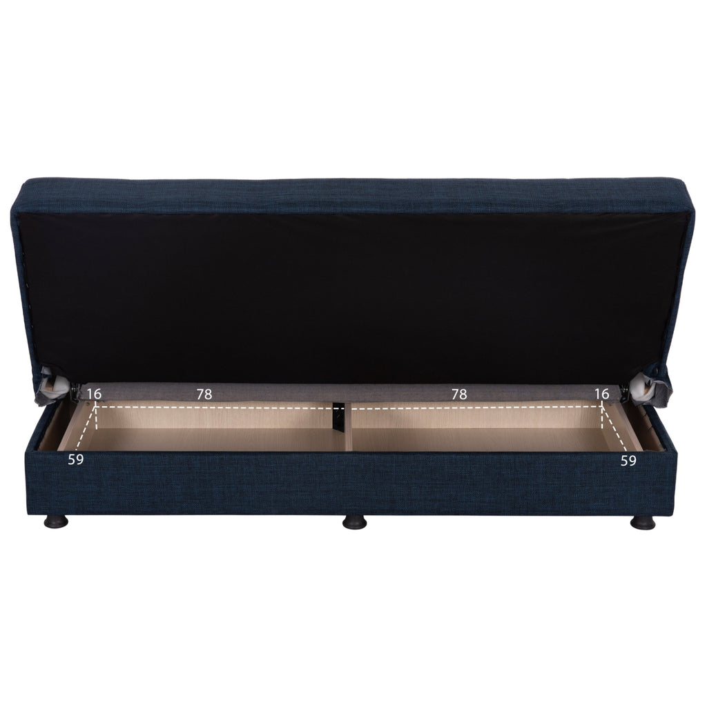 Представяме ви нов, триместен разтегателен диван. Висококачествен и особено практичен диван, който ще зарадва както собственика си, така и гостите му! Започвайки от основите и очевидното, цветът на тапицерията с отличната и добре ушита релефна материя на този диван е СИН. Разполага с 2 малки продълговати възглавници със същата материя, които могат да се използват както всеки желае. Характерно за този диван е, че няма подлакътници, в резултат на което не ограничава използването му от потребителите. Той също така се превръща много лесно в легло чрез лесен за използване механизъм (щрак-щрак), умножавайки полезността му. Под седалката на дивана има 2 места за съхранение с подсилен под, което го прави истински мултифункционален инструмент, особено за студентски къщи, но и за къщи с ограничено пространство като цяло. РАЗМЕРИ: 180x83x74H см. Размери на седалката: 180x54 см. Размери на облегалката: 180x40 см. Височина на седалката: 40 см. Размери на леглото: 180x100 см. Размери за съхранение: 78x59x16H см. (x2) МАТЕРИАЛИ ЗА КОНСТРУКЦИЯ: Рамката на дивана е изработена от дърво. Краката на дивана са ниски, кръгли и изработени от подсилен полиетилен с отлична устойчивост на тегло и влага. Платът, който покрива целия диван, е с отлично качество и е добре пришит към средно твърдата пяна на седалката и облегалката, която е със същата плътност и дебелина, тъй като диванът се превръща и в легло. ПОДДРЪЖКА: Качествените материали за изработка на дивана го правят изключително лесен за употреба! Едно забърсване с влажна кърпа върху цялата му повърхност ще го освежи и ще го запази да изглежда нов в продължение на много години. ПРЕДИМСТВА: Този диван е истински мултифункционален инструмент. Той предлага всички характеристики, които го отличават в своята категория. Има двойно приложение като диван и легло, има места за съхранение и няма подлакътници, което увеличава комфорта, който предлага като легло. Но друго много важно предимство са удобните му размери, които го правят подходящ за малки къщи и стаи, а също така го правят лесен за транспортиране. **Точното цветопредаване на продукта може леко да се различава от реалното поради различните настройки на всеки монитор.**
