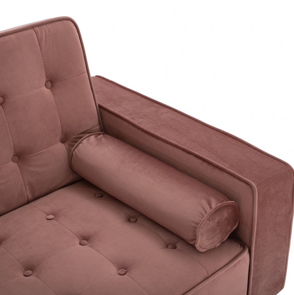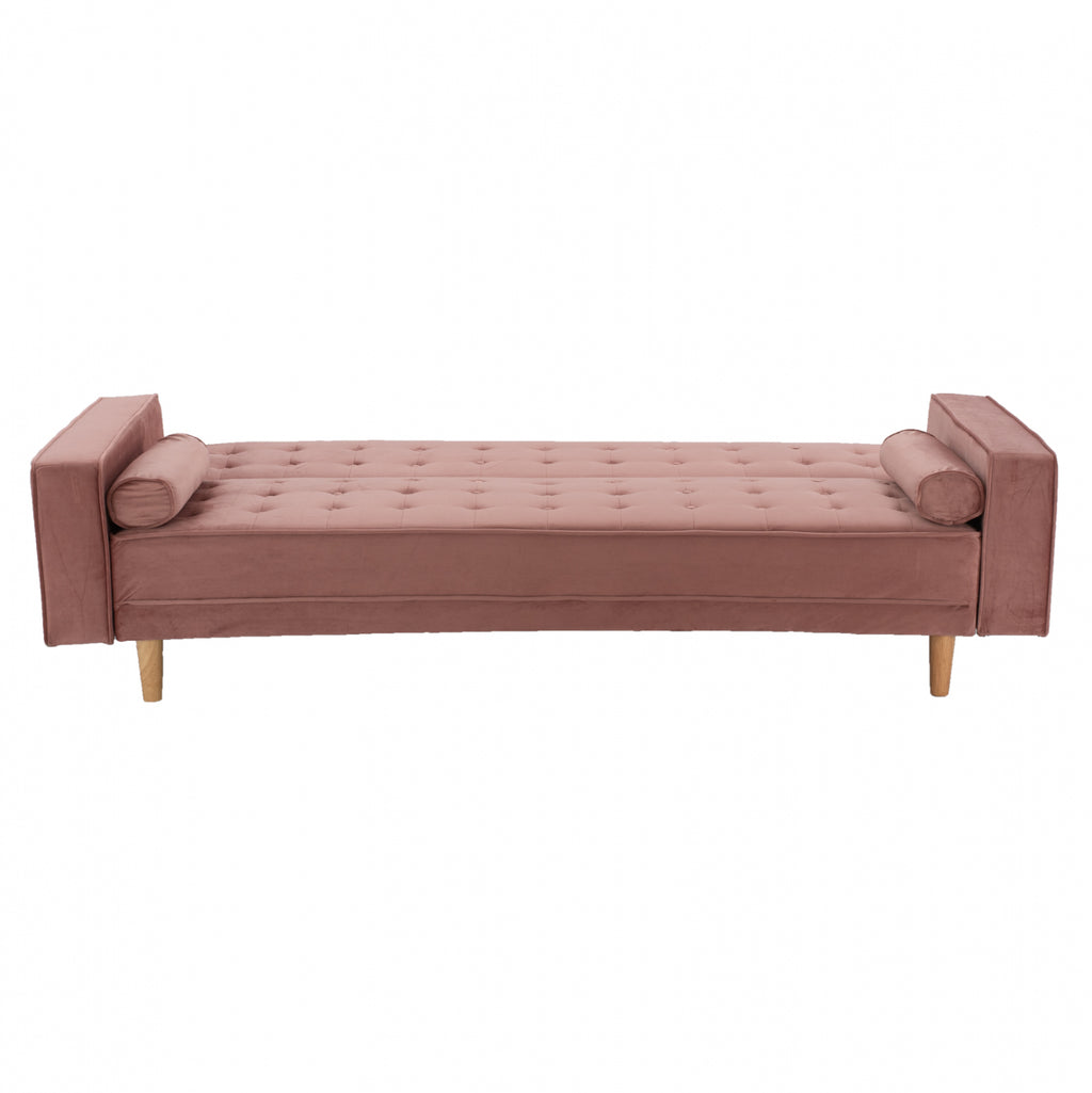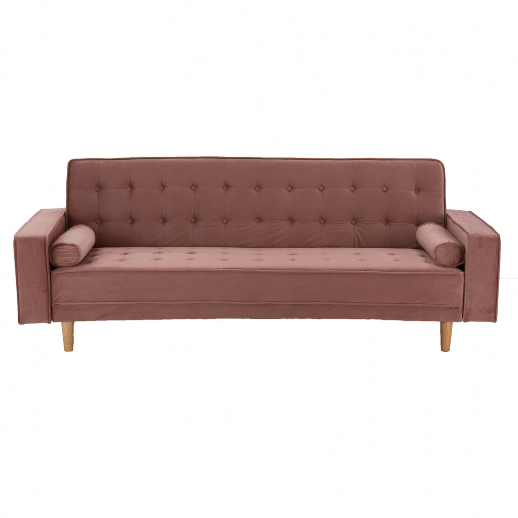 Разтегателен диван, тапициран с кадифена материя в цвят гнила ябълка 223X90X80Y см. Сгъваем разтегателен диван, подходящ за вашата всекидневна или спалня, облегалката му има възможност да се спусне назад и лесно да се трансформира в удобно легло. Разполага с широки, големи и удобни седалки, така че ако търсите комфорт и функционалност в обзавеждането си, този продукт ще ви осигури и двете. Този многофункционален диван е идеален за неочаквани гости в случай на нощувка, като същевременно осигурява удобно място за сядане, придружено от две декоративни възглавници. Има подсилени дървени крака, в естествен нюанс и е особено стабилен и издръжлив. Той е идеален избор за тези от вас, които търсят нещо елегантно, функционално и висококачествено. Размери: 223x90x80 см. Размери на седалката: 165x56 см. Размери на облегалката: 195x48 см. Размери на подлакътниците: 63x18 см. Височина на седалката: 40 см. Височина на подлакътниците: 56 см. Височина на краката: 5,5 - 25 см. Размери на леглото: 195x110 см. Размери на възглавницата: 54xΦ13 см. Разстояние между краката: 180x75 см.