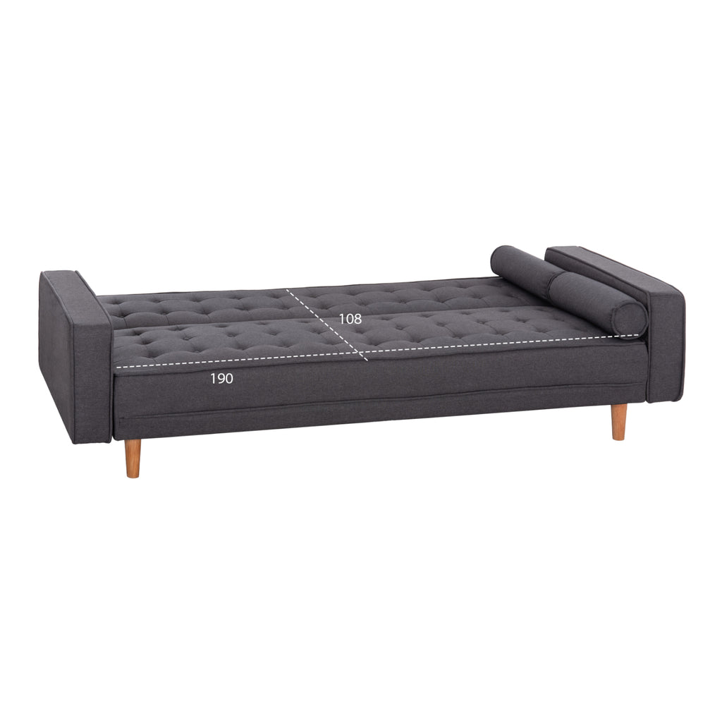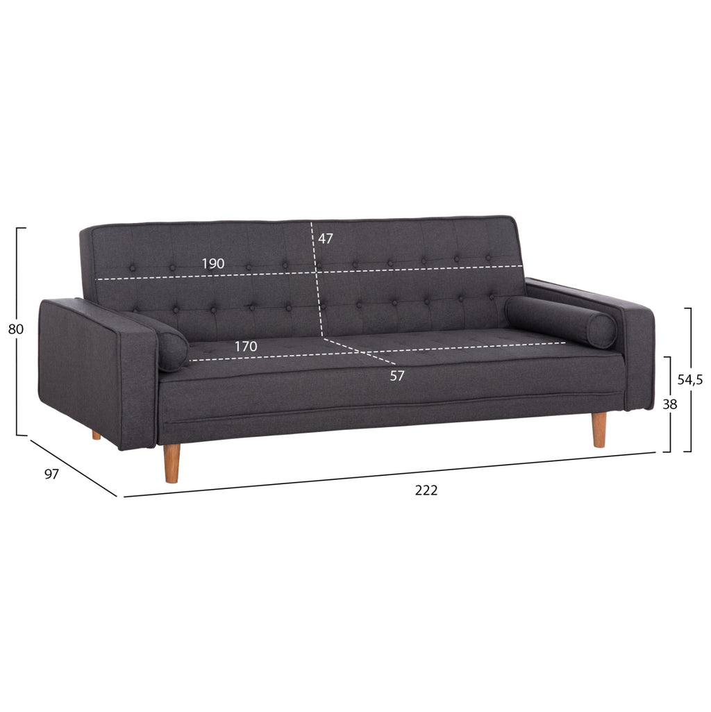 Разтегателен диван, тапициран с дамаска в сиво. Разтегателен диван, подходящ за вашата всекидневна или спалня. Гърбът му има възможност за падане назад и лесно се превръща в удобно легло. Има широки, големи и удобни седалки, така че ако търсите удобство и функционалност в мебелите си, този продукт ще ви осигури и двете. Този универсален диван е идеален за неочаквани гости, които нощуват, като същевременно осигурява удобна зона за сядане, придружена от две декоративни възглавници. Има подсилени дървени крака, в естествен нюанс и е особено стабилен и издръжлив. Той е идеален избор за тези от вас, които търсят нещо елегантно, функционално и качествено. Размери: 222x97x80H см. Размери на седалката: 170х57 см. Размери на гърба: 190х47см. Височина на ръцете: 54,5 см. Височина на седалката: 38 см. Височина на крака: 15 см. Размери на леглото: 190х108см.