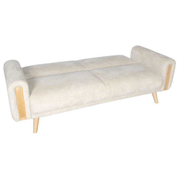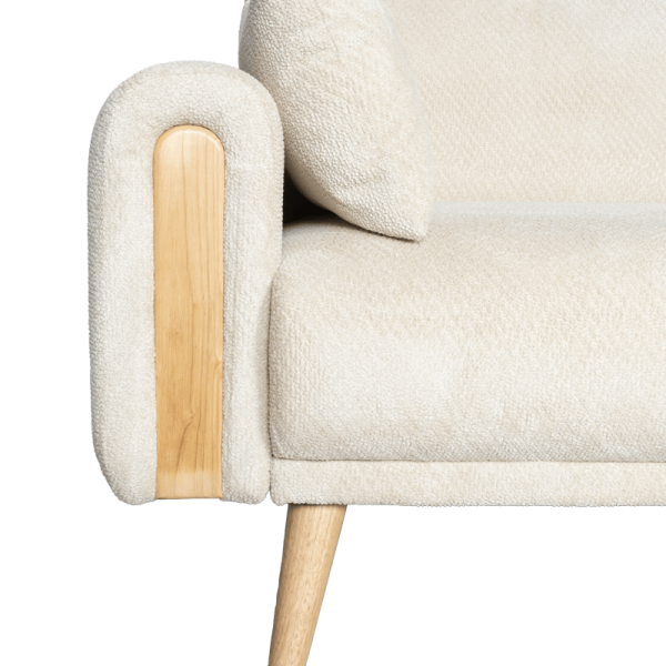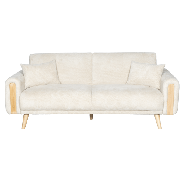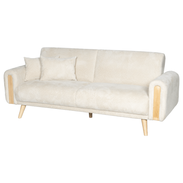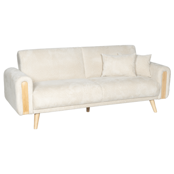 Диван GOMA впечатлява със своя балансиран дизайн, който съчетава модерна линия с топлината на естествените материали. Дървените крака и декоративните елементи в подлакътниците внасят усещане за уют и домашна хармония, превръщайки го в естествен акцент в интериора. Конструкцията от дърво и метал гарантира стабилност и дълготрайност, а висококачествената дамаска, съчетана с пълнеж от пенополиуретан и покет пружини, осигурява изключителен комфорт при седене и сън. Механизмът за разтягане тип клик‑клак трансформира дивана в удобно легло с площ 113 × 179 см. Включени са две декоративни възглавници с калъфи с цип за лесно сваляне и поддръжка.