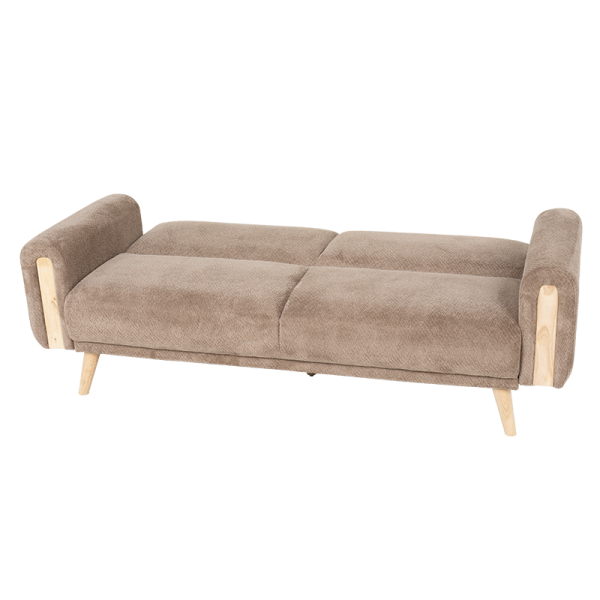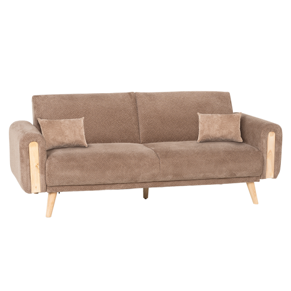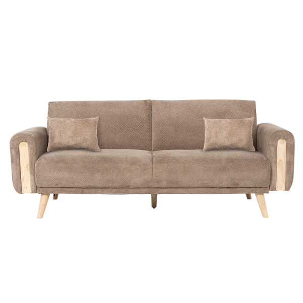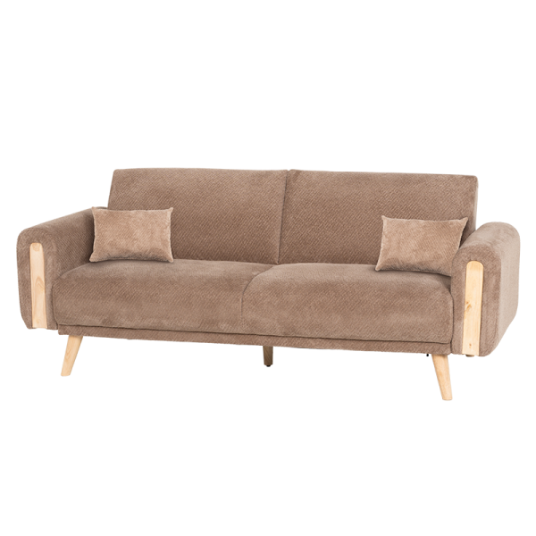 Диван GOMA впечатлява със своя балансиран дизайн, който съчетава модерна линия с топлината на естествените материали. Дървените крака и декоративните елементи в подлакътниците внасят усещане за уют и домашна хармония, превръщайки го в естествен акцент в интериора. Конструкцията от дърво и метал гарантира стабилност и дълготрайност, а висококачествената дамаска, съчетана с пълнеж от пенополиуретан и покет пружини, осигурява изключителен комфорт при седене и сън. Механизмът за разтягане тип клик‑клак трансформира дивана в удобно легло с площ 113 × 179 см. Включени са две декоративни възглавници с калъфи с цип за лесно сваляне и поддръжка.