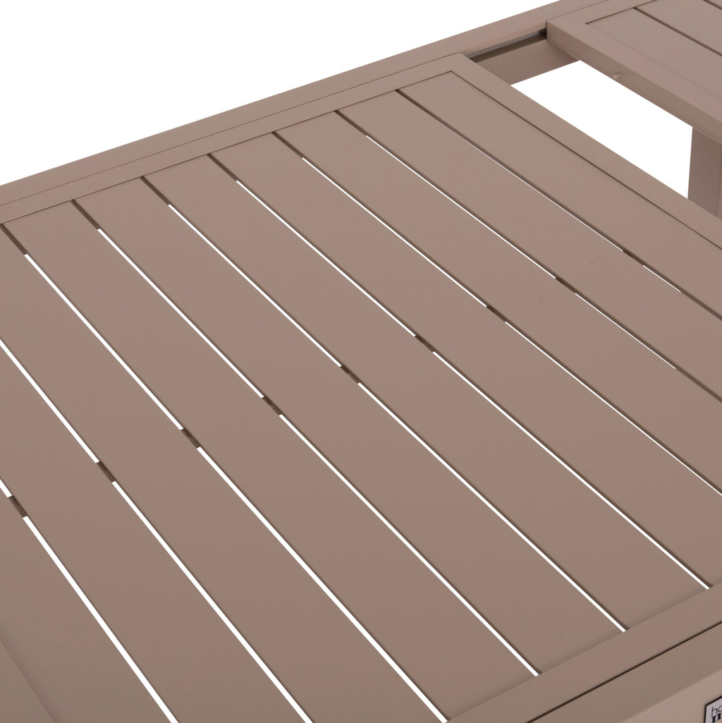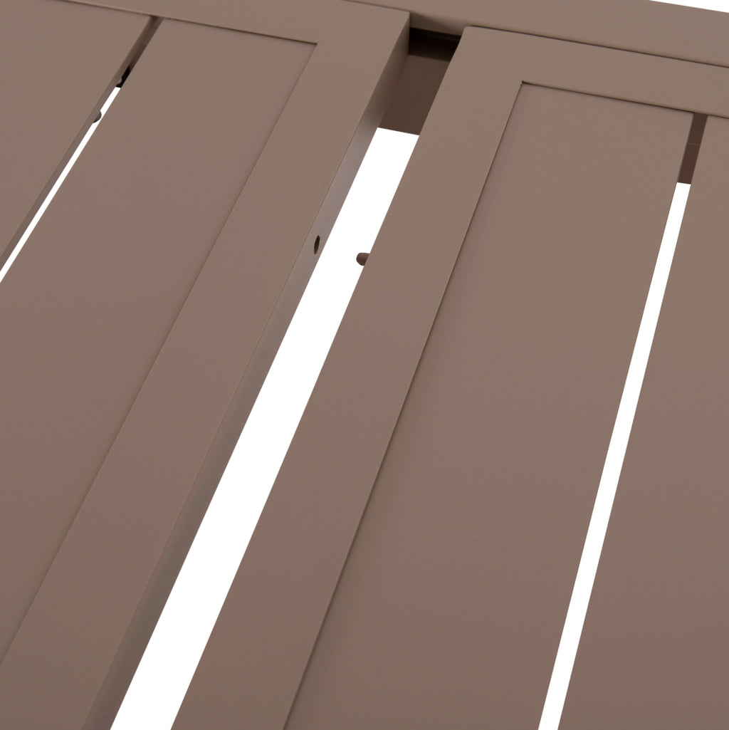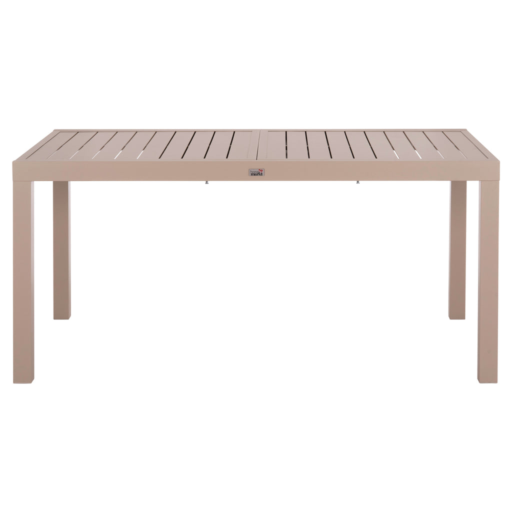 Голямата правоъгълна маса КРУМ е изработена изцяло от алуминий в цвят КАПУЧИН. По отношение на дизайна следва класическата "линия", но това, което го отличава е разширяващата се повърхност, която също има предпазен механизъм, който стабилизира повърхността. Идеален за множество приложения, както у дома, така и в професионални пространства. РАЗМЕРИ: 160-240x90x73H см. Разстояние между краката: 148x80 см. Алуминиеви спецификации: 60x60x1.2mm---- 65x35x1.5mm МАТЕРИАЛИ НА КОНСТРУКЦИЯТА: Масата е изработена от алуминий. Алуминият е „зелен“ материал, който може да се рециклира неограничено време, като запазва характеристиките си без влошаване на качеството. По своята същност е устойчив на корозия. ПОДДРЪЖКА: Не е необходима специална поддръжка, благодарение на издръжливостта на алуминия. В идеалния случай използвайте много мека кърпа или гъба, обилно количество вода и мек почистващ продукт, като препарат за миене на съдове. Не изисква специална поддръжка, тъй като не корозира. Сапунът и водата са достатъчни, за да го поддържате чист и блестящ. *Продуктът се доставя несглобен **Точното цветопредаване на продукта може леко да се различава от действителния продукт поради различните настройки на всеки монитор.