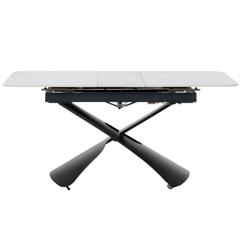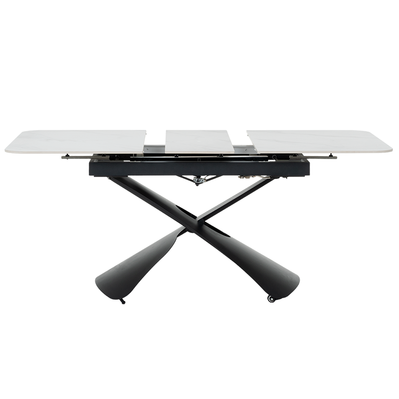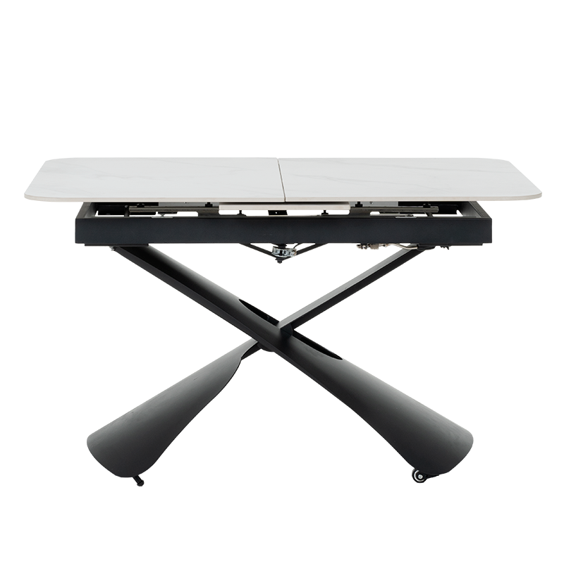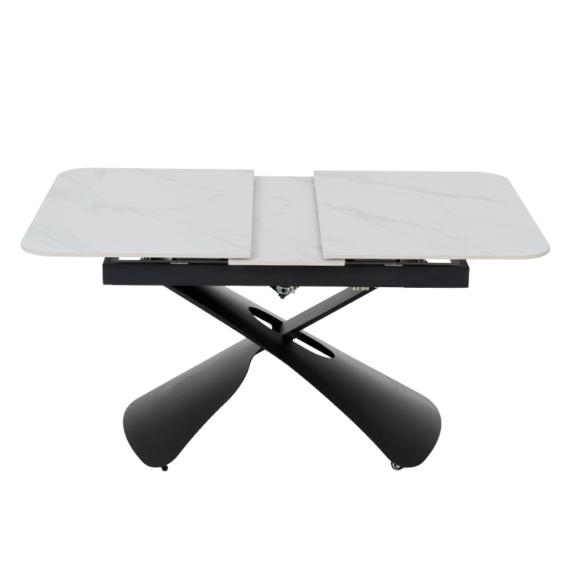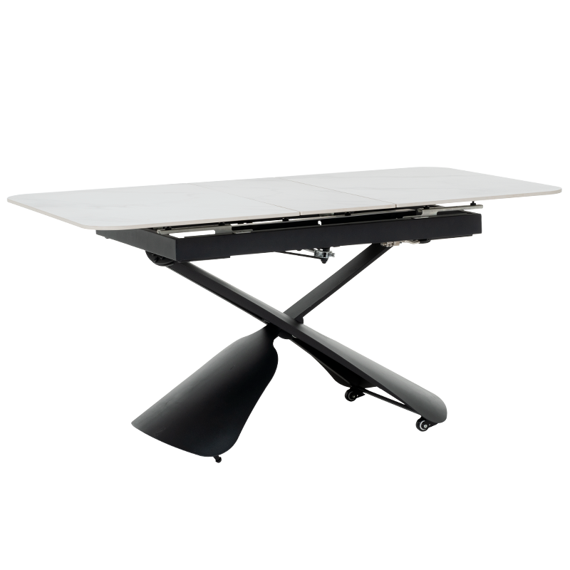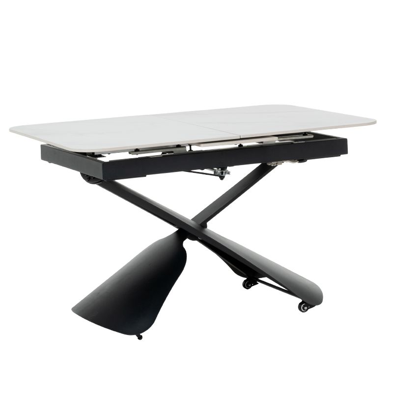 Разтегателна маса с повдигащ механизъм CAGUA впечатлява със съвременен дизайн и функционалност. С помощта на повдигащия механизъм тя лесно се трансформира от ниска холна маса в удобна трапезна маса, което я прави идеално решение за компактни и модерни пространства. Белият цвят на плота създава усещане за свежест и лекота, докато изчистените линии допринасят за минималистичната ѝ визия. Масата е изработена от висококачествени материали, осигуряващи издръжливост и надеждност за ежедневна употреба. Вградените колелца улесняват преместването на масата, като осигуряват допълнително удобство и мобилност. С разтегателна маса с повдигащ механизъм CAGUA получавате не само стилно допълнение към интериора, но и практичен елемент, който съчетава елегантност и удобство. Пълна информация за размерите и характеристиките на модела ще намерите в таблицата в таб/поле "Техническа информация".