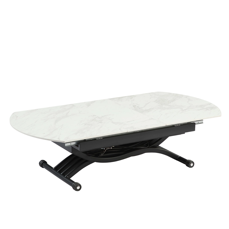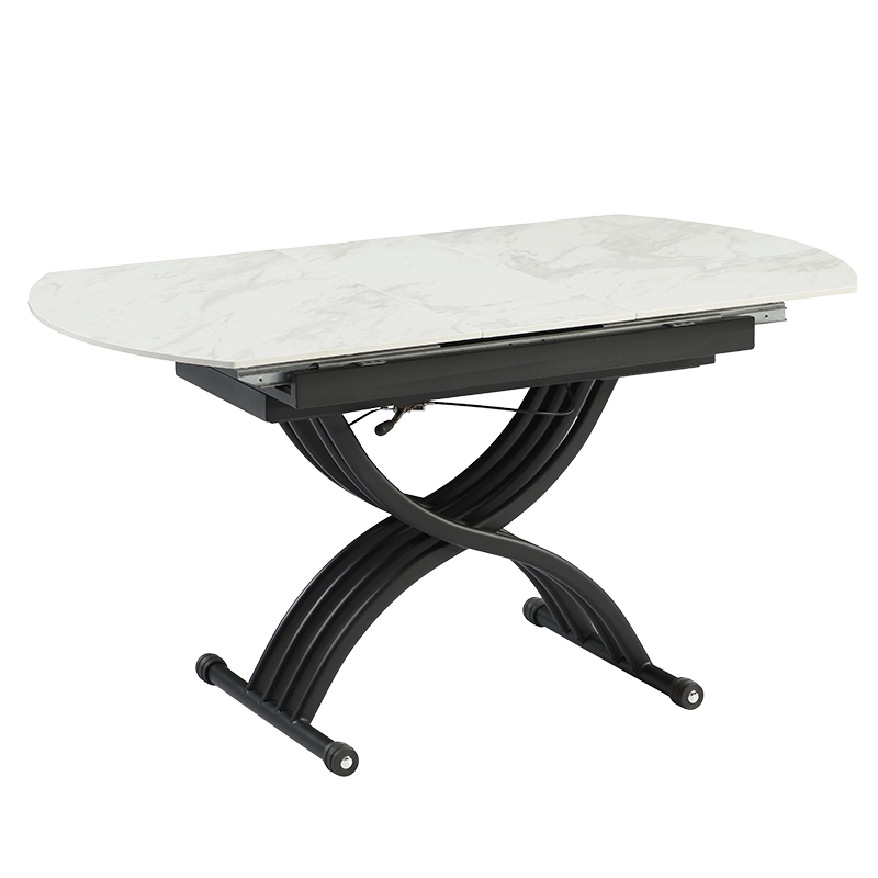 Масата LESKO е перфектният избор за тези, които търсят съчетание между функционалност и елегантен дизайн. Тя разполага с иновативен повдигащ механизъм, който позволява лесно регулиране на височината от 38 до 76 см, превръщайки я от холна в трапезна маса с едно движение. Разтегателният механизъм с модерна слайд система разширява плота от 120 до 150 см, като запазва широчината от 80 см. Керамичният плот осигурява изключителна здравина и стабилност, а съвременният му вид добавя усещане за лукс и уникален стил към вашия интериор. С LESKO лесно преминавате от сутрешното кафе към обяд или вечеря с приятели и семейството – всичко в един изискан и практичен продукт. Пълна информация за размерите и характеристиките на модела ще намерите в таблицата в таб/поле "Техническа информация".