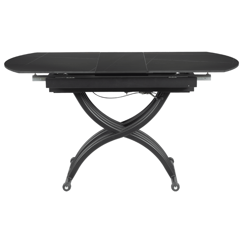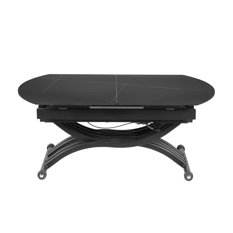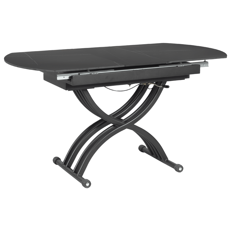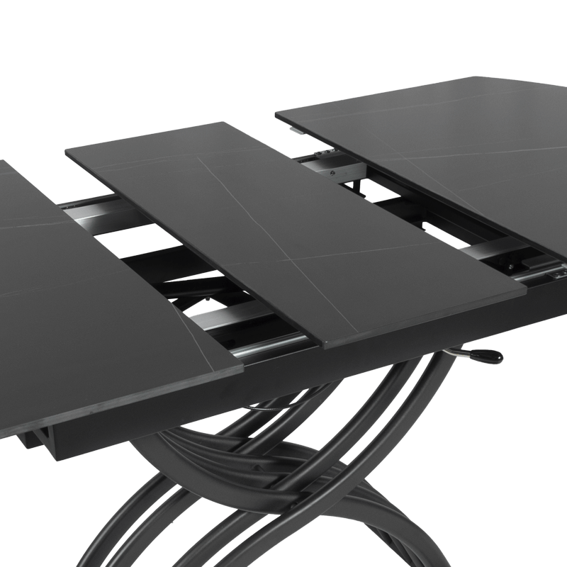 Масата LESKO е перфектният избор за тези, които търсят съчетание между функционалност и елегантен дизайн. Тя разполага с иновативен повдигащ механизъм, който позволява лесно регулиране на височината от 38 до 76 см, превръщайки я от холна в трапезна маса с едно движение. Разтегателният механизъм с модерна слайд система разширява плота от 120 до 150 см, като запазва широчината от 80 см. Керамичният плот осигурява изключителна здравина и стабилност, а съвременният му вид добавя усещане за лукс и уникален стил към вашия интериор. С LESKO лесно преминавате от сутрешното кафе към обяд или вечеря с приятели и семейството – всичко в един изискан и практичен продукт. Пълна информация за размерите и характеристиките на модела ще намерите в таблицата в таб/поле "Техническа информация".