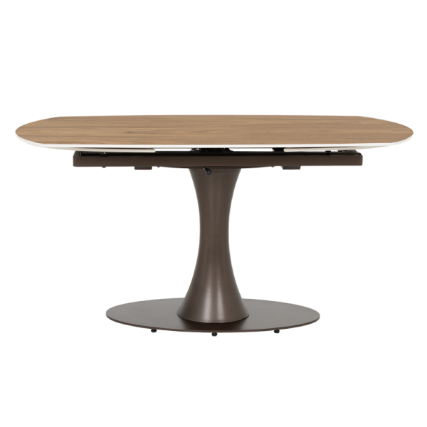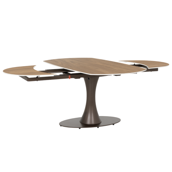 Тази трапезна маса е идеална за семейни вечери, празнични събирания и ежедневни обеди. Керамичният плот е изключително лесен за поддръжка и почистване, а разтегателният механизъм ви позволява да приемате гости без компромис с комфорта. Комбинацията от тъмен орех и метална основа създава елегантен акцент в трапезарията.