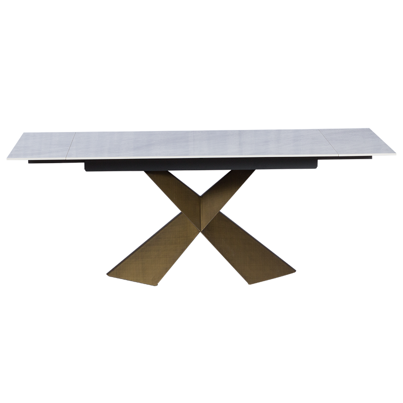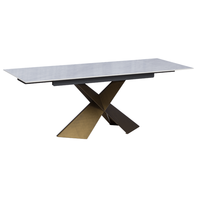 Трапезна маса DABKI е въплъщение на елегантността и функционалността. Комбинацията от бяло и злато създава изискана атмосфера, която превръща всяко хранене в специално преживяване.