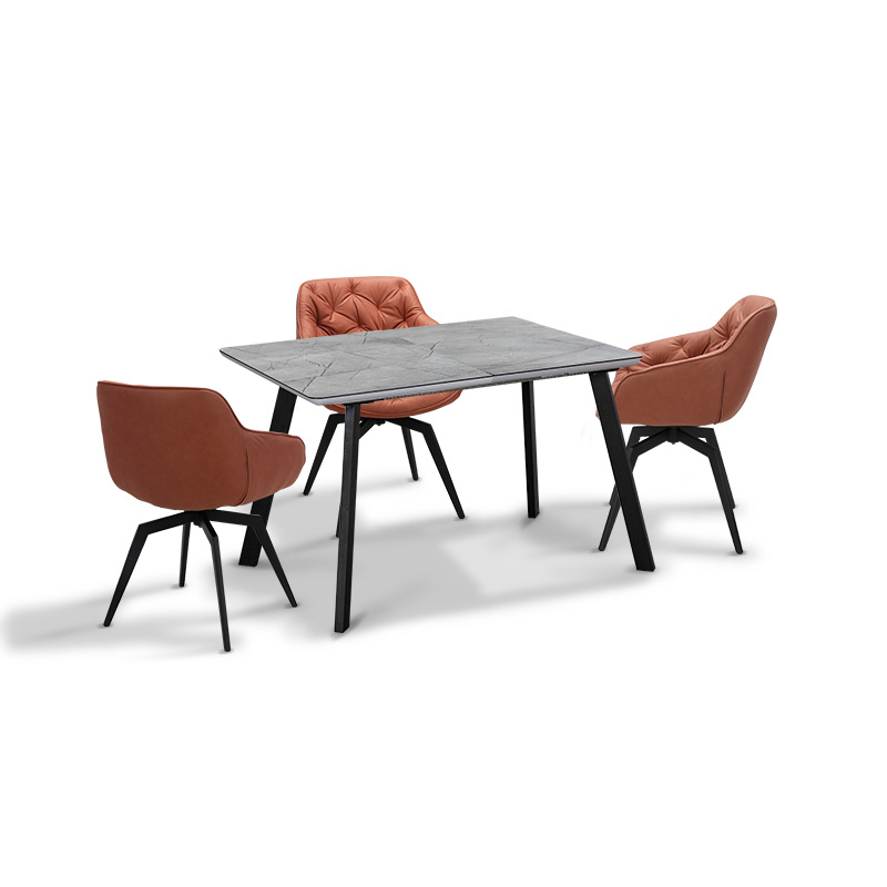 DARWIN е модерна и стилна трапезна маса със стабилни метални крака, която съчетава елегантния сив цвят с черни акценти за съвременен и изискан вид.