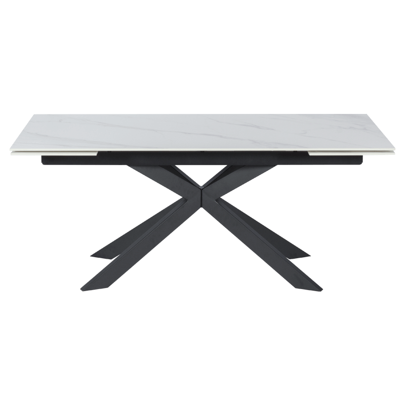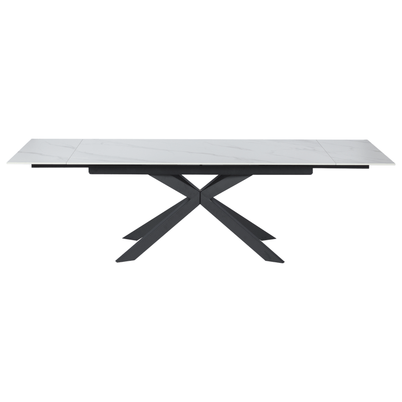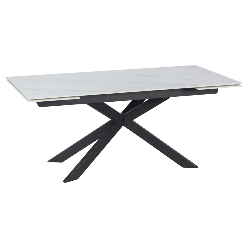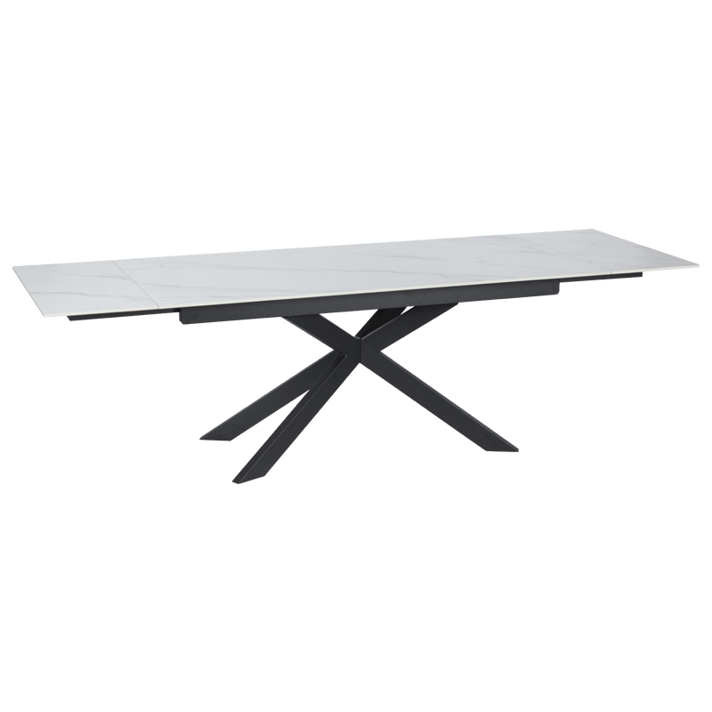 Разтегателна трапезна маса ELK - бяла е висок клас маса с масивна основа, голям керамичен плот и функция за разтягане до забележителните 260 см.