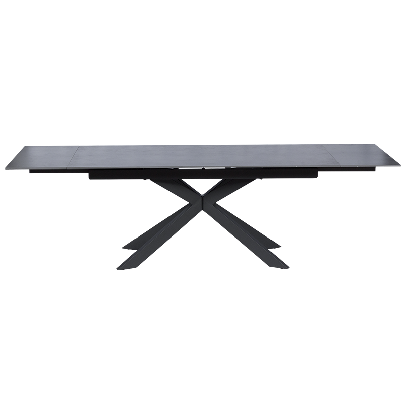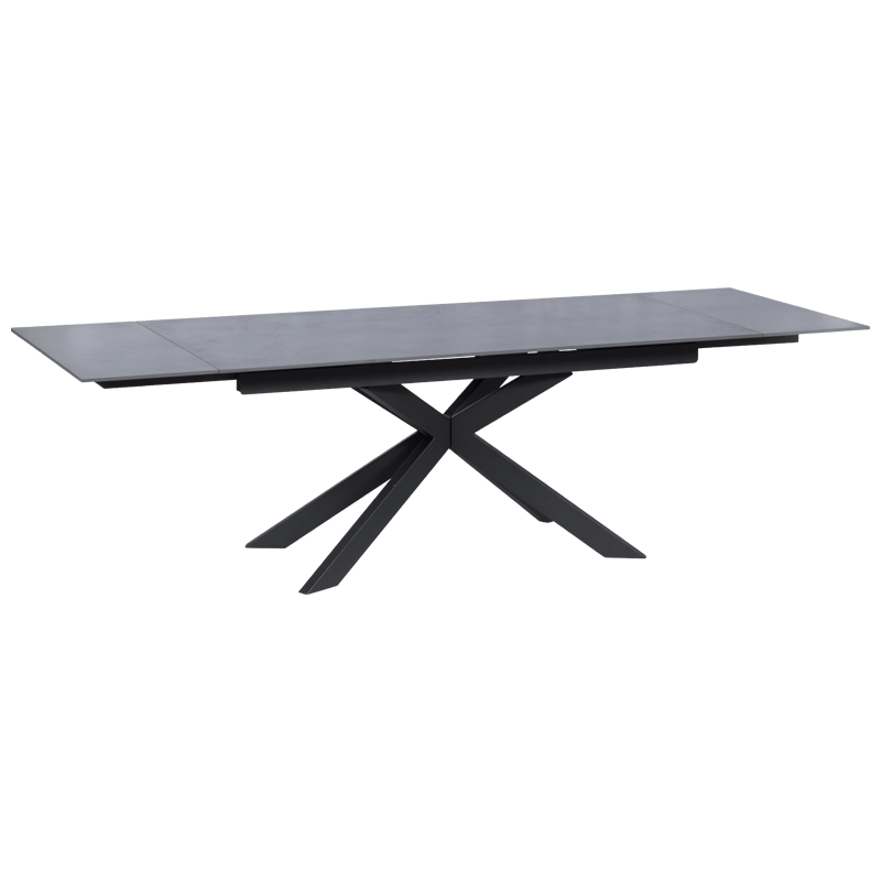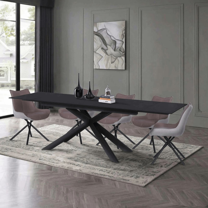 Разтегателна трапезна маса ELK - черна е висок клас маса с масивна основа, голям керамичен плот и функция за разтягане до забележителните 260 см.