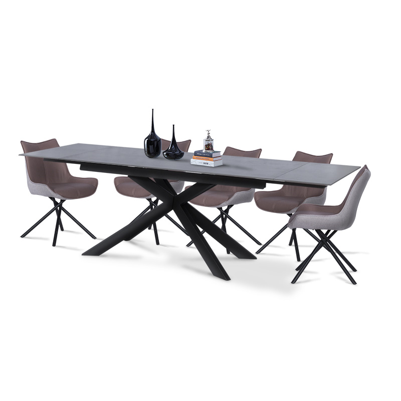 Разтегателна трапезна маса ELK - сива е висок клас маса с масивна основа, голям керамичен плот и функция за разтягане до забележителните 260 см.