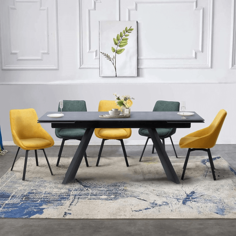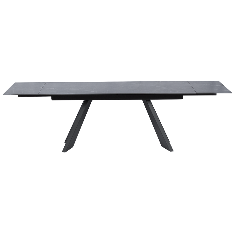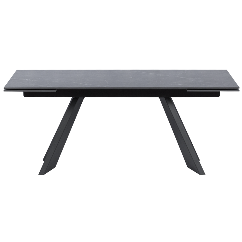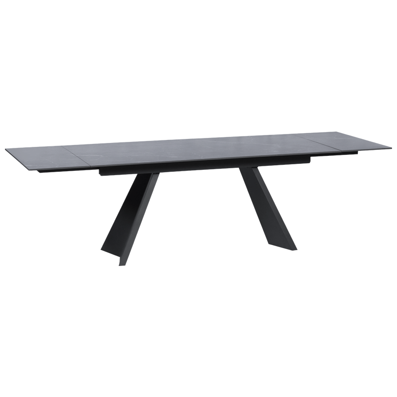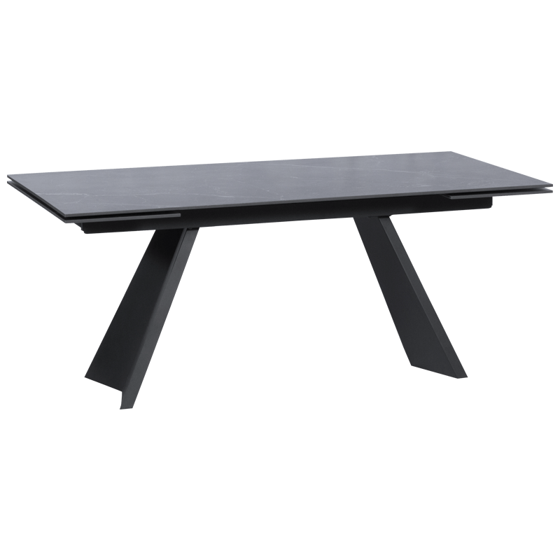 Разтегателна трапезна маса GLOGOW - черна е модерна маса с интересна, стабилна основа и практична функция за разтягане до впечатляващите 260 см.