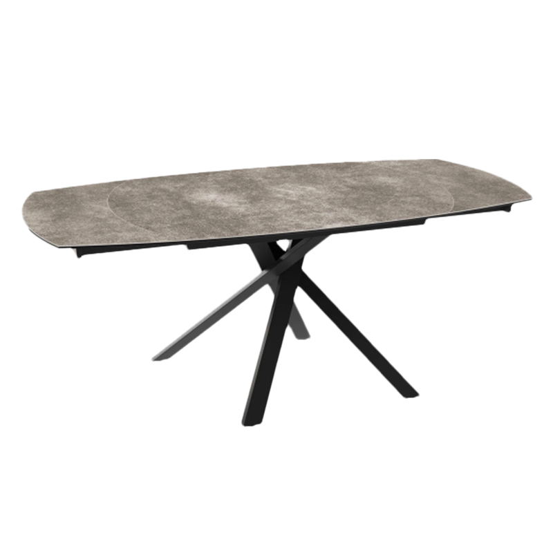 Разтегателната трапезна маса GOLOLIN X се отличава с изискания си плот, изработен от комбинация от закалено стъкло и керамика, който впечатлява с фини текстури и стилен бежов оттенък. Масата разполага с иновативен механизъм, при който разширението се осъществява чрез завъртане на основния плот, разкривайки двата допълнителни плота и трансформирайки масата от 120 см на 180 см. Тази интелигентна функция осигурява лесно и плавно разтягане, добавяйки допълнително пространство за вашите гости. Основата на GOLOLIN X е изработена от праховобоядисан метал в черен цвят, който създава контраст и допринася за модерния вид на масата. Динамичният дизайн на краката с кръстосана форма осигурява стабилност и придава визуален акцент, който подчертава съвременната естетика на модела. GOLOLIN X съчетава елегантност и функционалност, което я прави идеалният избор за всеки модерен дом. Пълна информация за размерите и характеристиките на модела ще намерите в таблицата в таб/поле "Техническа информация".