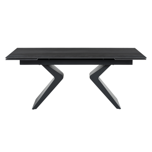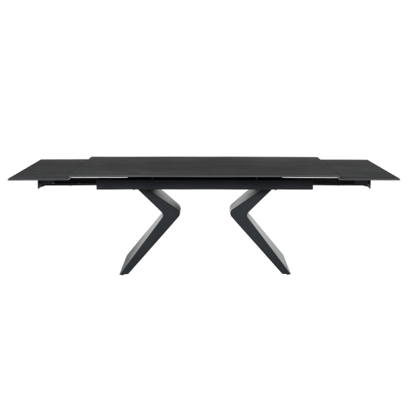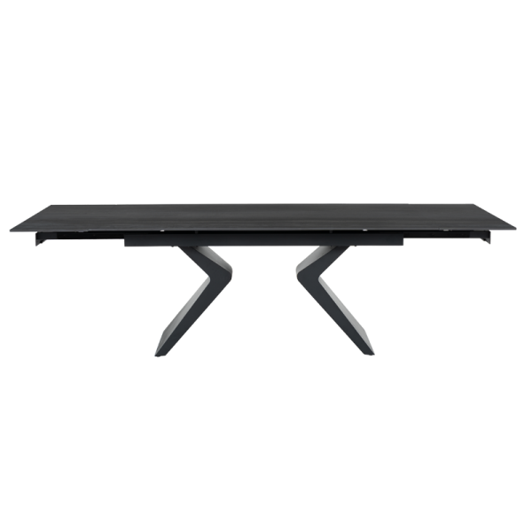 Разтегателна трапезна маса GUAMA впечатлява със своя модерен и изчистен дизайн, който комбинира елегантност и практичност. Плотът е изработен от керамика с дебелина 12 мм, отличаваща се с висока устойчивост на надраскване и лесна поддръжка. Праховобоядисаната метална основа осигурява стабилност и придава съвременен индустриален облик на масата. Благодарение на удобния механизъм за едновременно разтягане от двете страни, моделът лесно увеличава дължината си, когато посрещате повече гости. В изискан черен цвят, GUAMA е перфектният избор за модерна трапезария с характер.