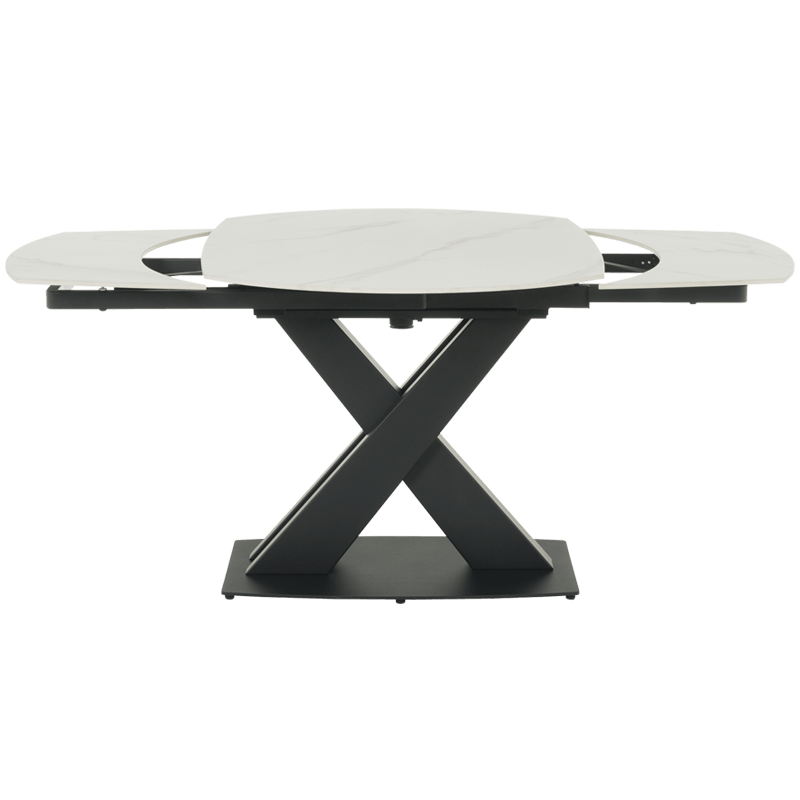 Разтегателна трапезна маса KARLINO - бяла се отличава с високо качество и съвременни линии, осигурявайки повече място за посрещане на приятели и близки.