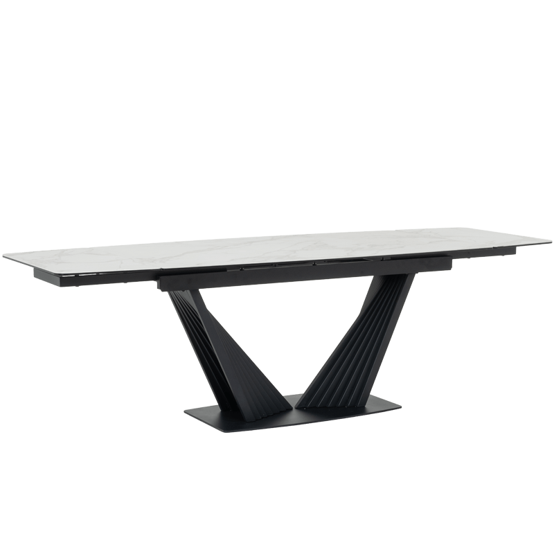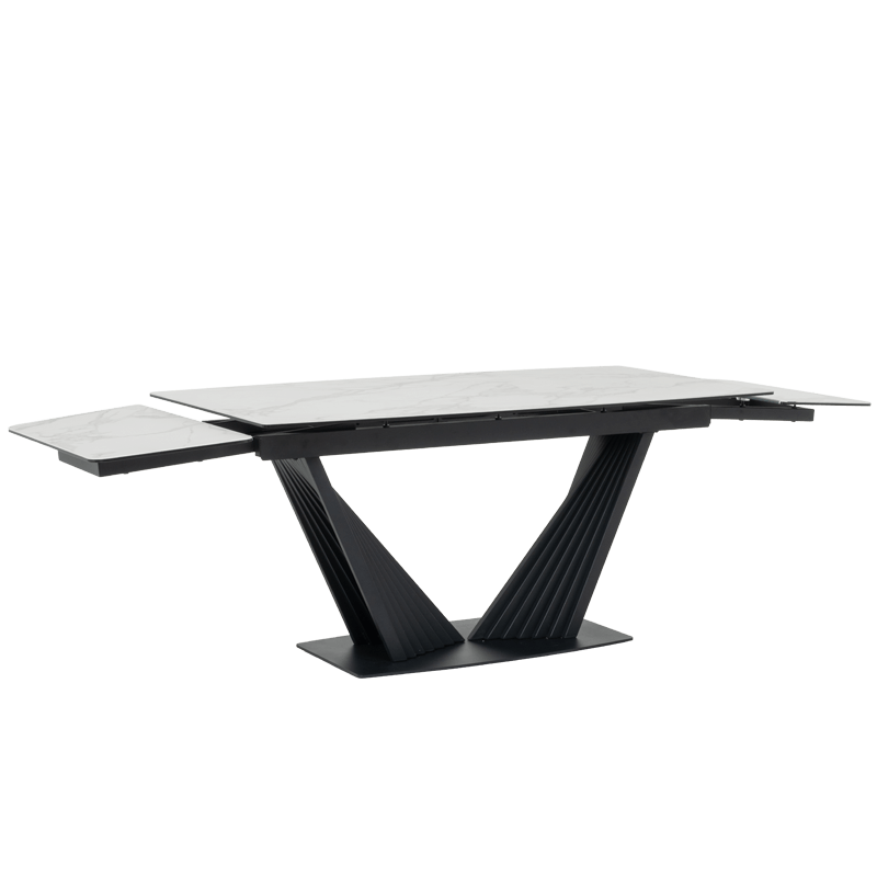 Разтегателната трапезна маса LEGNICA в елегантен бял цвят е въплъщение на изтънчения вкус и функционалност, създадена да украсява вашата трапезария.
