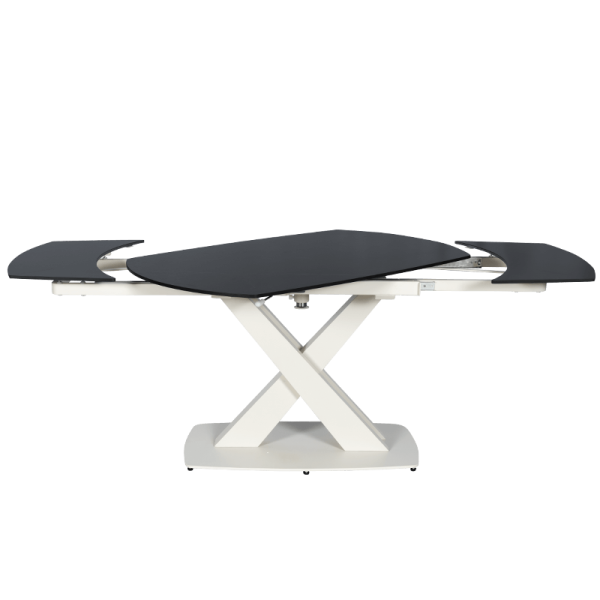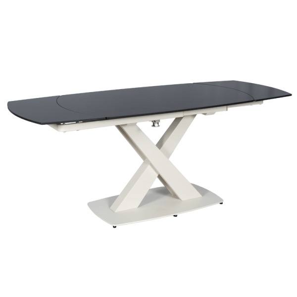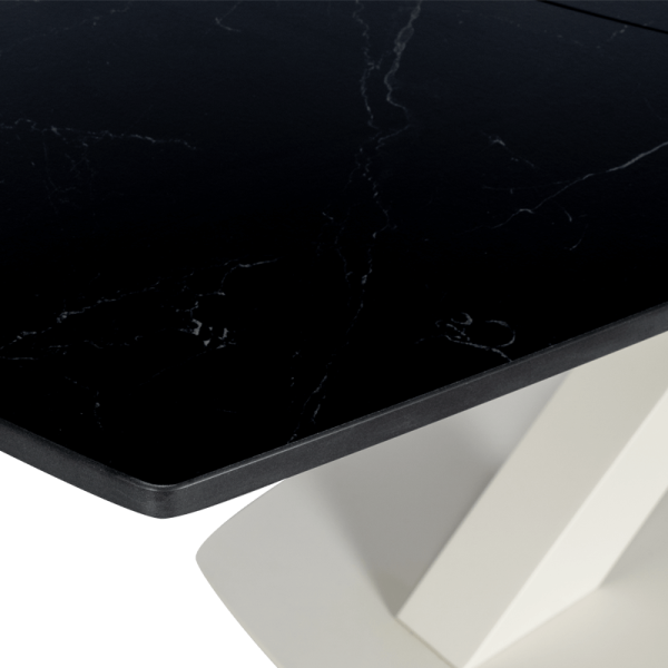 Разтегателна трапезна маса MATEO в изискан кремав цвят съчетава модерна визия с практичност. Плотът от керамика добавя издръжливост и изтънчен стил, докато основата от праховобоядисан метал впечатлява със своята здравина и елегантност. Благодарение на разтегателния механизъм, масата лесно се трансформира от 130 см до 190 см, осигурявайки достатъчно пространство за вашите специални моменти. MATEO е не просто мебел, а акцент, който ще придаде свежест и класа на вашата трапезария.