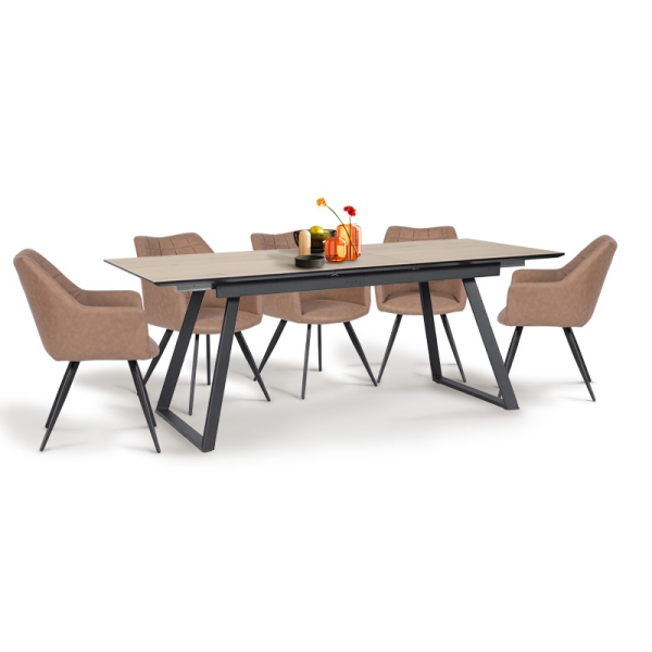 NIAGARA е стилна и модерна трапезна маса в топъл цвят бук, която съчетава естетика и функционалност със стабилни метални крака.