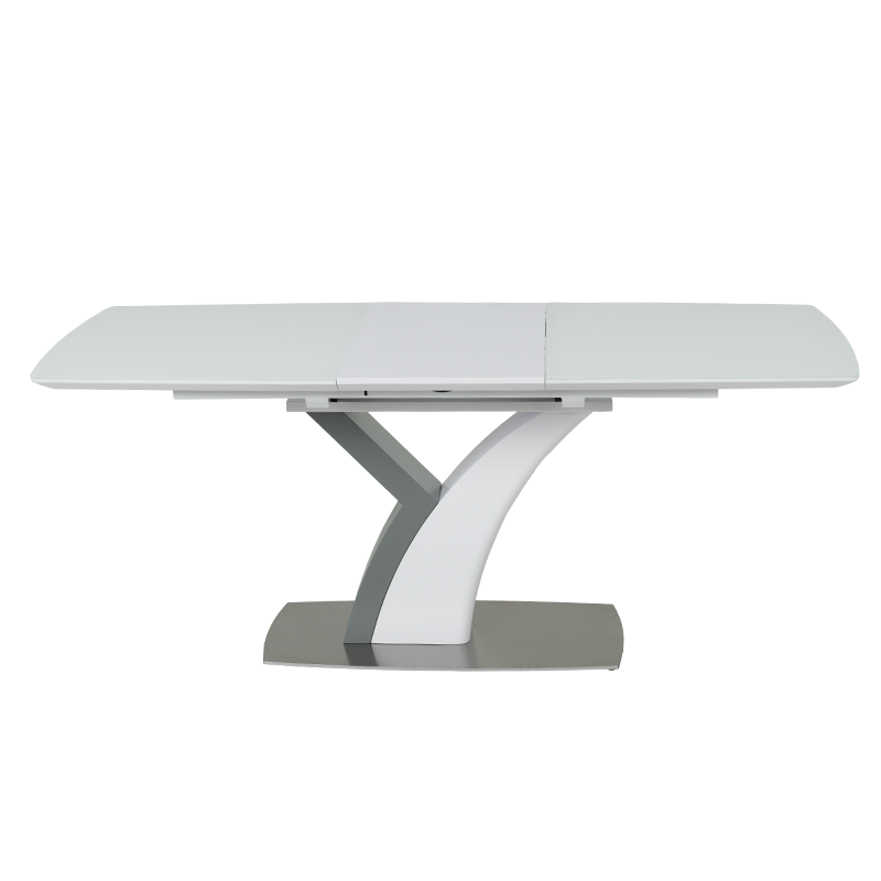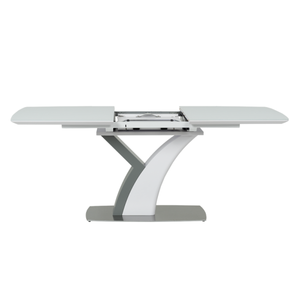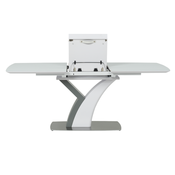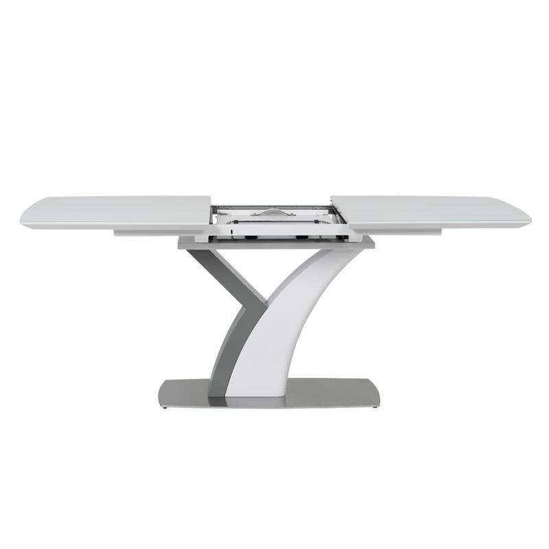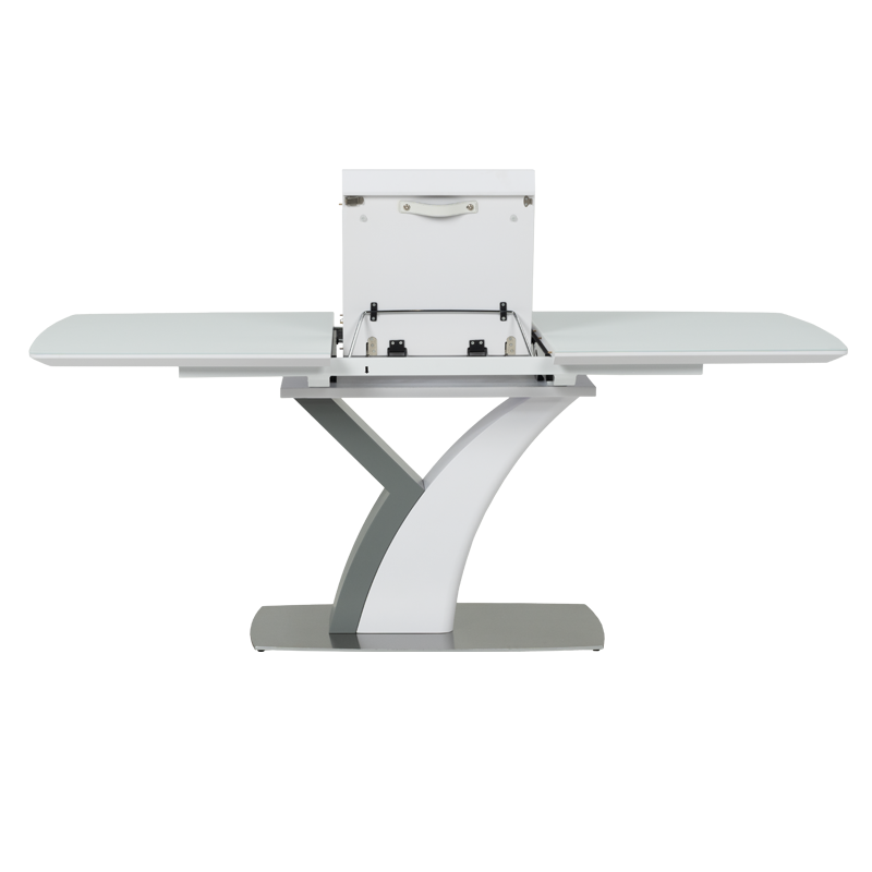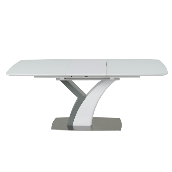 Разтегателната трапезна маса OMIS впечатлява със своя модерен дизайн и функционалност в елегантен бял цвят, който създава усещане за простор и светлина.