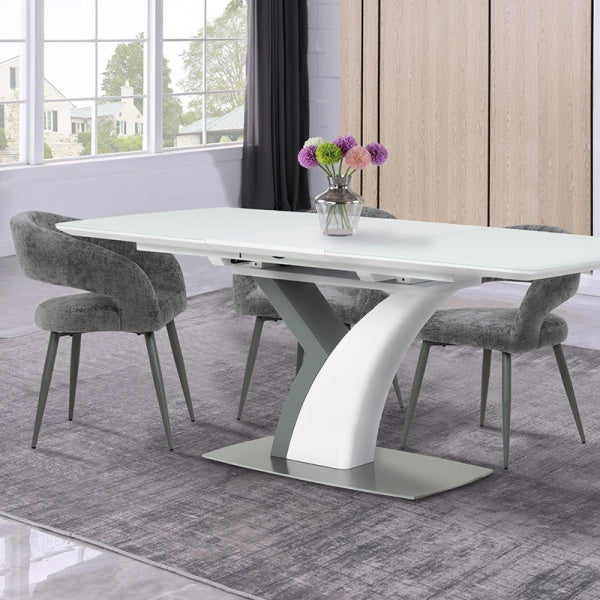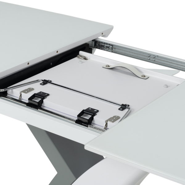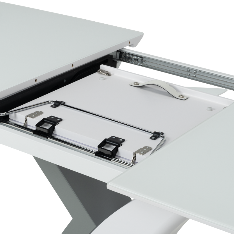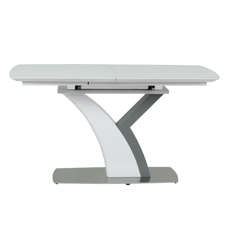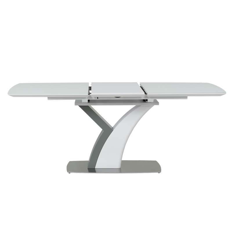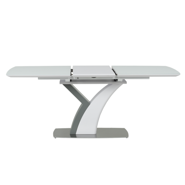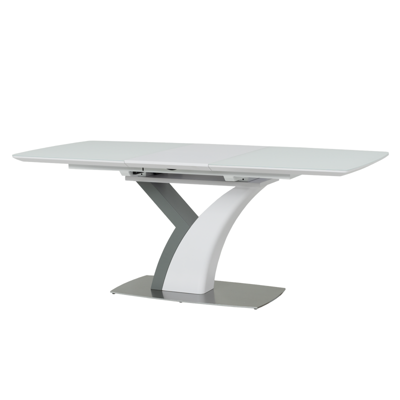 Разтегателната трапезна маса OMIS впечатлява със своя модерен дизайн и функционалност в елегантен бял цвят, който създава усещане за простор и светлина.