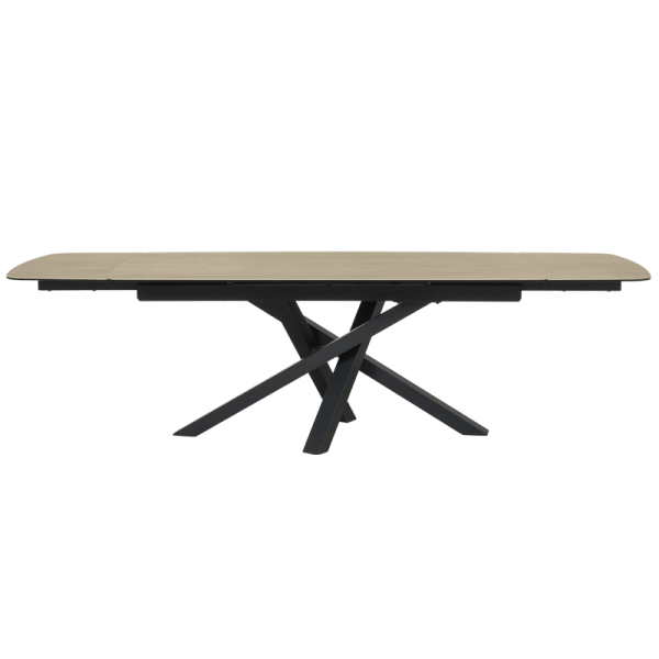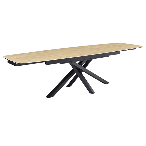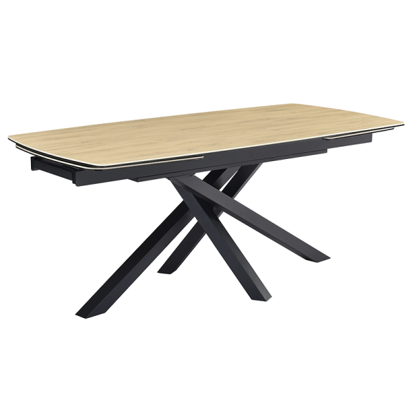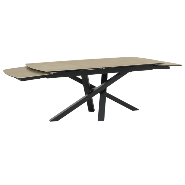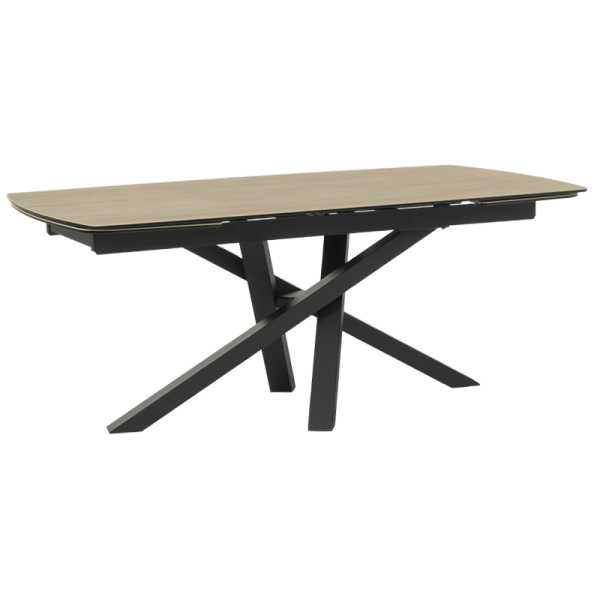 Здравина и прецизна изработка Тази разтегателна маса за трапезария е изработена от висококачествени материали, които осигуряват здравина и надеждност. Плотът комбинира керамика и закалено стъкло, което го прави издръжлив на удари, надраскване и високи температури. Металната основа с праховобоядисано покритие гарантира стабилност и защита срещу износване, като същевременно допринася за елегантната визия на модела. |