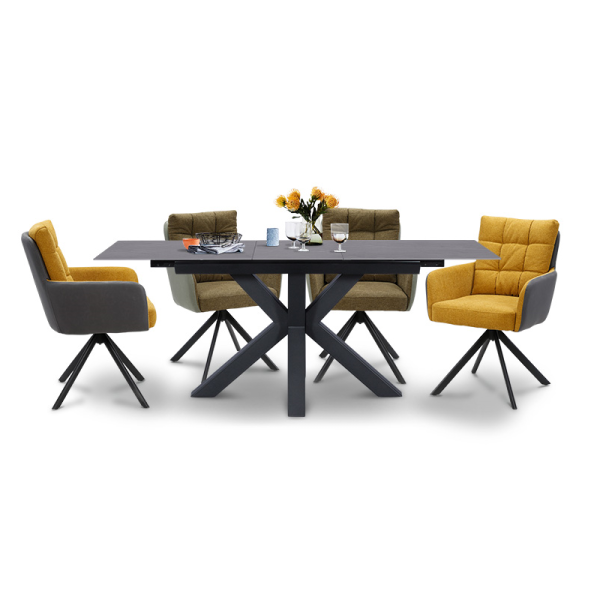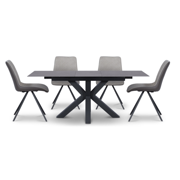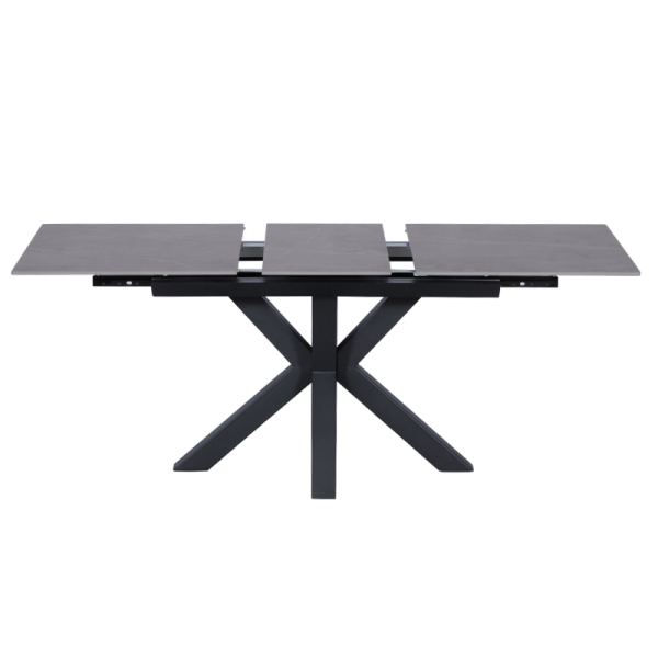 Разтегателна трапезна маса STARGARD - сива е модерна маса с масивни и нестандартни крака, идеална за семейства, които имат нужда от гъвкавост.