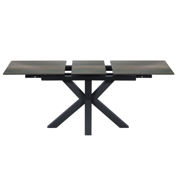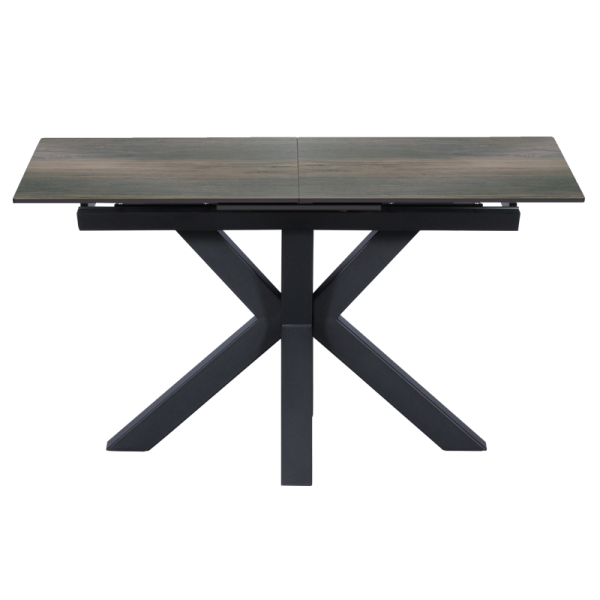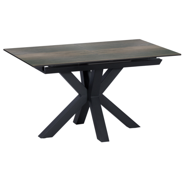 Разтегателна трапезна маса STARGARD X може да преобрази всеки дом със своя стил. Тя има модерна визия с масивни и нестандартни крака. Разполага с правоъгълен керамичен плот, комбиниран със закалено стъкло, който има функция за разтягане. Благодарение на това масата достига от 140 см до 180 см дължина. Пълна информация за размерите и характеристиките на модела ще намерите в таблицата в таб/поле "Техническа информация".