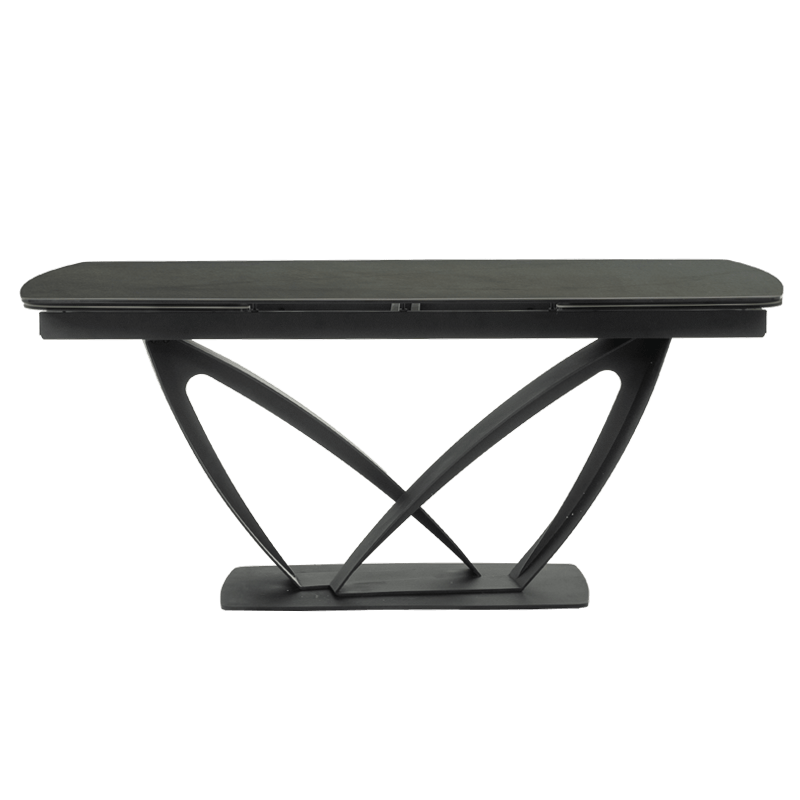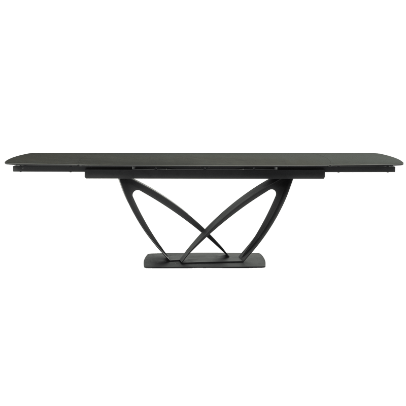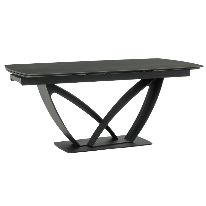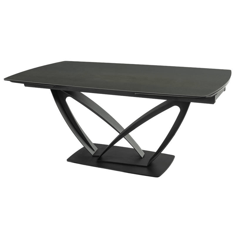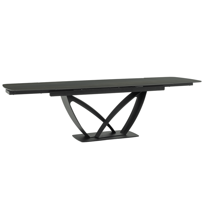 Разтегателната трапезна маса TORUN 2 впечатлява с интересната си и масивна основа в елегантен сив цвят, която съчетава стабилност и модерен дизайн.