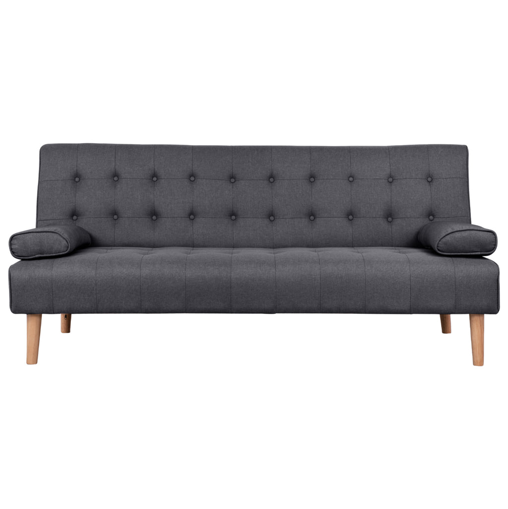 Разтегателен диван, тапициран със сив плат 190X84X83 см. Сгъваем разтегателен диван, подходящ за вашата всекидневна или спалня, гърбът му може да се сгъне назад и лесно да се превърне в удобно легло. Разполага с широки, големи и удобни седалки, така че ако търсите комфорт и функционалност в обзавеждането си, този продукт ще ви осигури и двете. Този многофункционален диван е идеален за неочаквани гости в случай на пренощуване, като същевременно осигурява удобно място за сядане, придружено от две декоративни възглавници. Има подсилени дървени крака, в естествен нюанс и е особено стабилен и издръжлив. Той е идеален избор за тези от вас, които търсят нещо елегантно, функционално и висококачествено. Идеален за студенти, но и за малки домове, защото не заема много място. Размери: 190x84x83 см. Височина на седалката: 40 см. Височина на подлакътниците: 50 см. Размери на седалката: 144x52 см. Размери на леглото: 190x102x40 см.