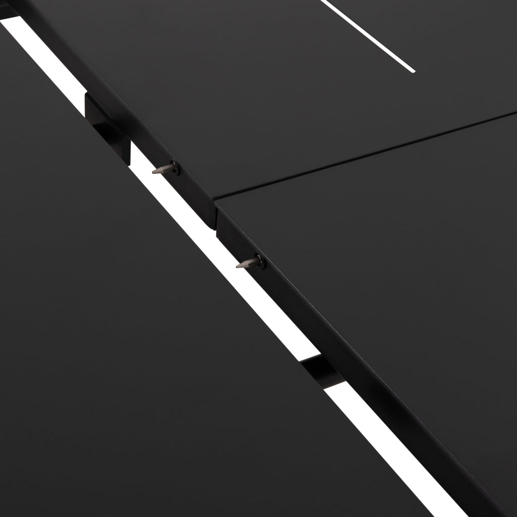 Масата е изработена от прахово боядисан алуминий. Алуминият е „зелен“ и устойчив на корозия материал, който може да се рециклира безкрайно, запазвайки характеристиките си без влошаване на качеството.