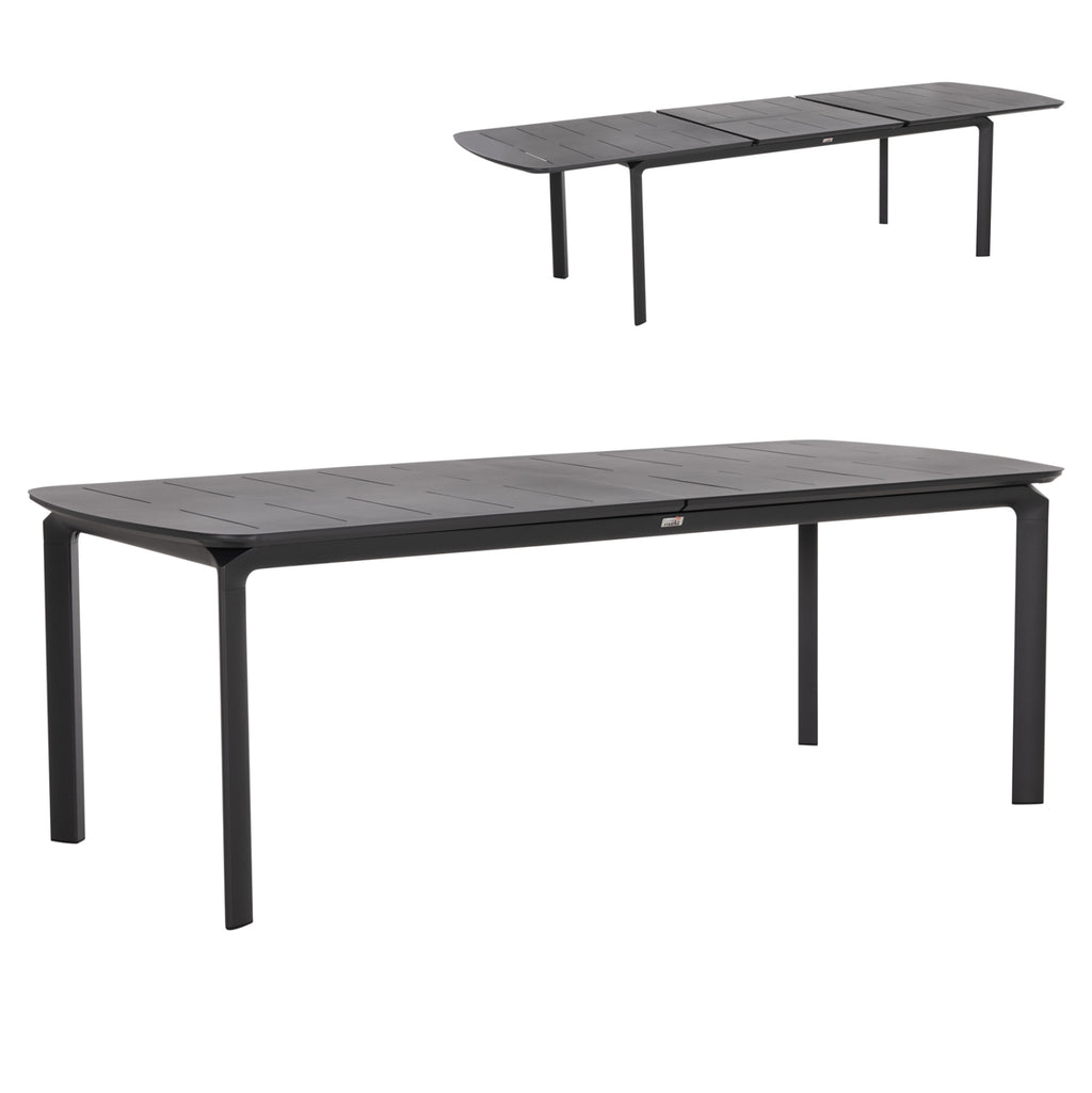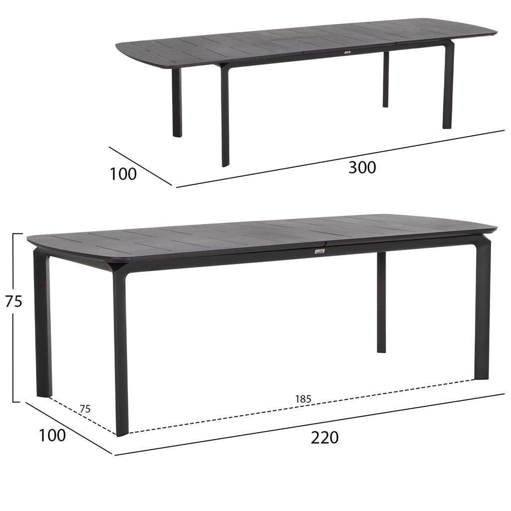 Правоъгълната маса SYMPO е изцяло изработена от алуминий в СИВ цвят. От гледна точка на дизайна, тя е семпла с красиви, извити ъгли и плот с красиви „линии“ от алуминий. Всъщност тя е разтегателна, което означава, че може да служи за всяко събиране с приятели и семейство! Комбинирайте я с подобни естетически столове, кресла или дори пейки и създайте красив образ във вашето външно пространство!
