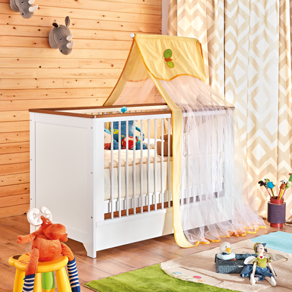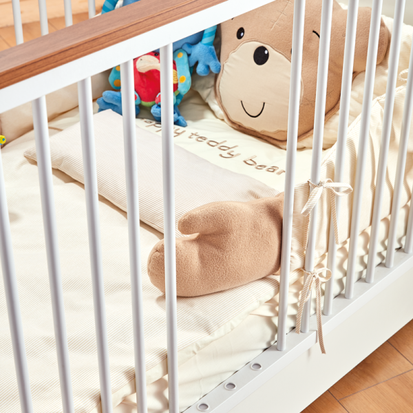 Бебешката кошара KAKULE съчетава стилна визия с практична конструкция, подходяща за съвременни детски стаи. Моделът е изработен от ПДЧ с дебелина 18 мм, а краката са от здрав ABS материал, който осигурява допълнителна устойчивост. Горната рамка е от МДФ и внася топъл дървесен акцент към цялостния дизайн. Подматрачната рамка може да се регулира на три нива – долно, средно и горно, което позволява адаптиране според възрастта на детето. Кошарата е съвместима с матрак с размери 70 x 130 см и предлага сигурна и комфортна среда за сън.