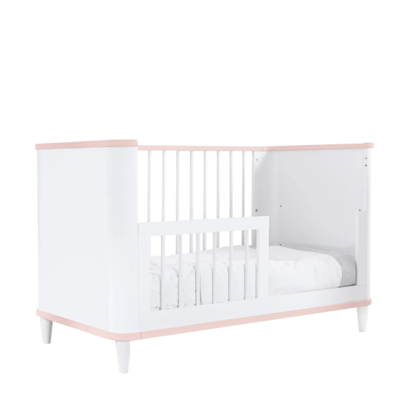 Регулируемата бебешка кошара LIMA 70 х 130 е създадена с внимание към детайла и безопасността на най-малките. С нежна цветова комбинация и заоблени форми, тя се вписва с лекота в модерния интериор на бебешката стая. Моделът разполага с регулируема по височина основа, което позволява адаптиране според възрастта на детето. Предлага се с подвижна решетка, която осигурява както напълно затворено пространство за максимална сигурност, така и възможност за използване в стил Montessori. Конструкцията е стабилна и подходяща за натоварване до 50 кг, а високите ABS крачета позволяват безпроблемна поддръжка с робот прахосмукачка.