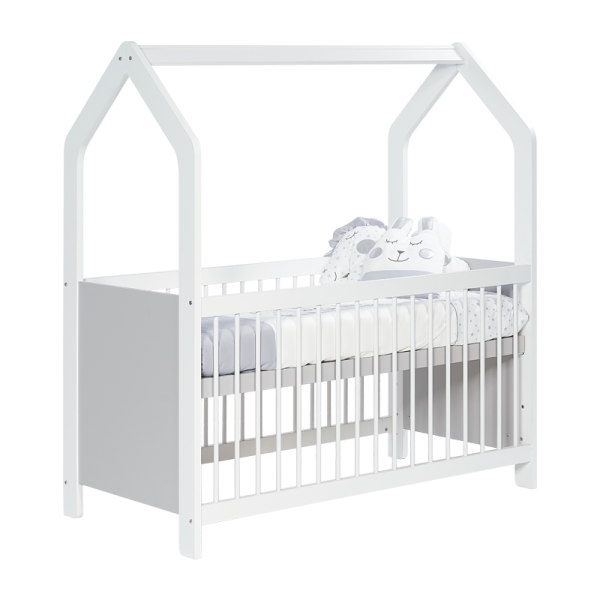 Регулируема бебешка кошара WHITE HOUSE 70 x 140 см съчетава стил, безопасност и функционалност в едно. Със своя изчистен дизайн във формата на къщичка и стабилна конструкция, тя създава уютна и сигурна среда за сън и игра през първите години на детето. Кошарата разполага с регулируема височина на матрака, което я прави удобна за различните етапи на развитие. При нужда, част от решетката може да се демонтира или премахне изцяло, за да позволи на порасналото дете да влиза и излиза самостоятелно. Използваните материали са подходящи за детска среда, а крачетата позволяват лесно почистване с робот прахосмукачка. Конструкцията издържа натоварване до 50 кг.