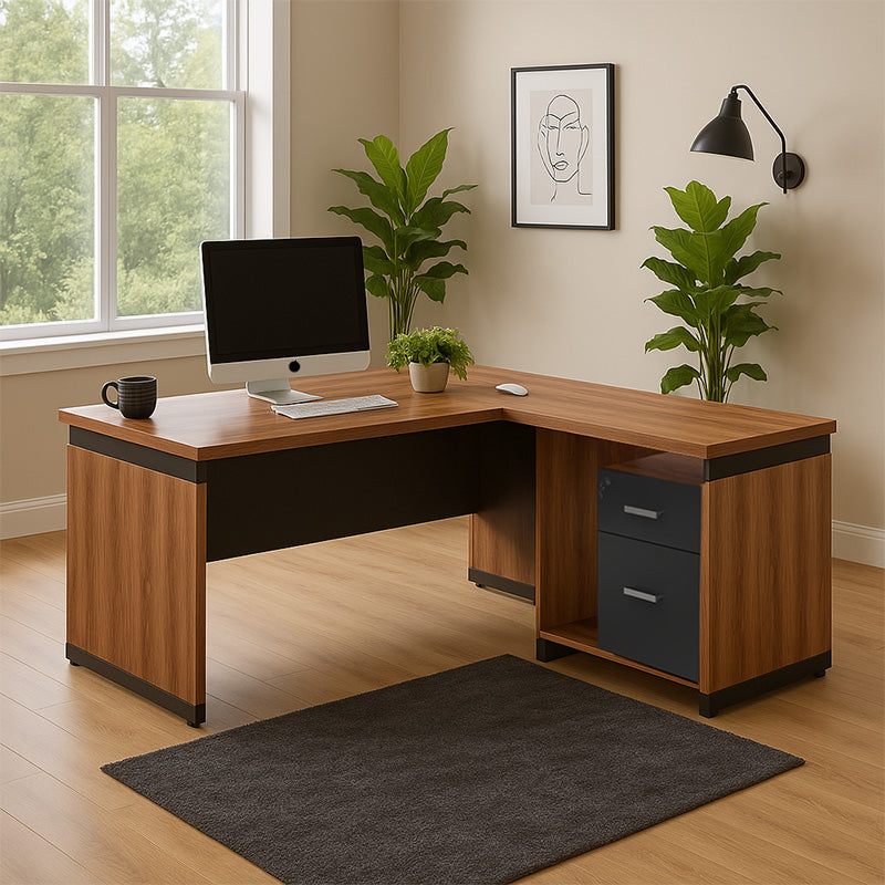 Бюрото Oscar е проектирано с внимание към детайла и е изключително подходящо за мениджърски офиси и бизнес среди, където стилът е от значение. Цветовата комбинация от орех и антрацит създава усещане за авторитет и хармония. Висококачественото ПДЧ и меламиновото покритие гарантират здравина и лесна поддръжка.