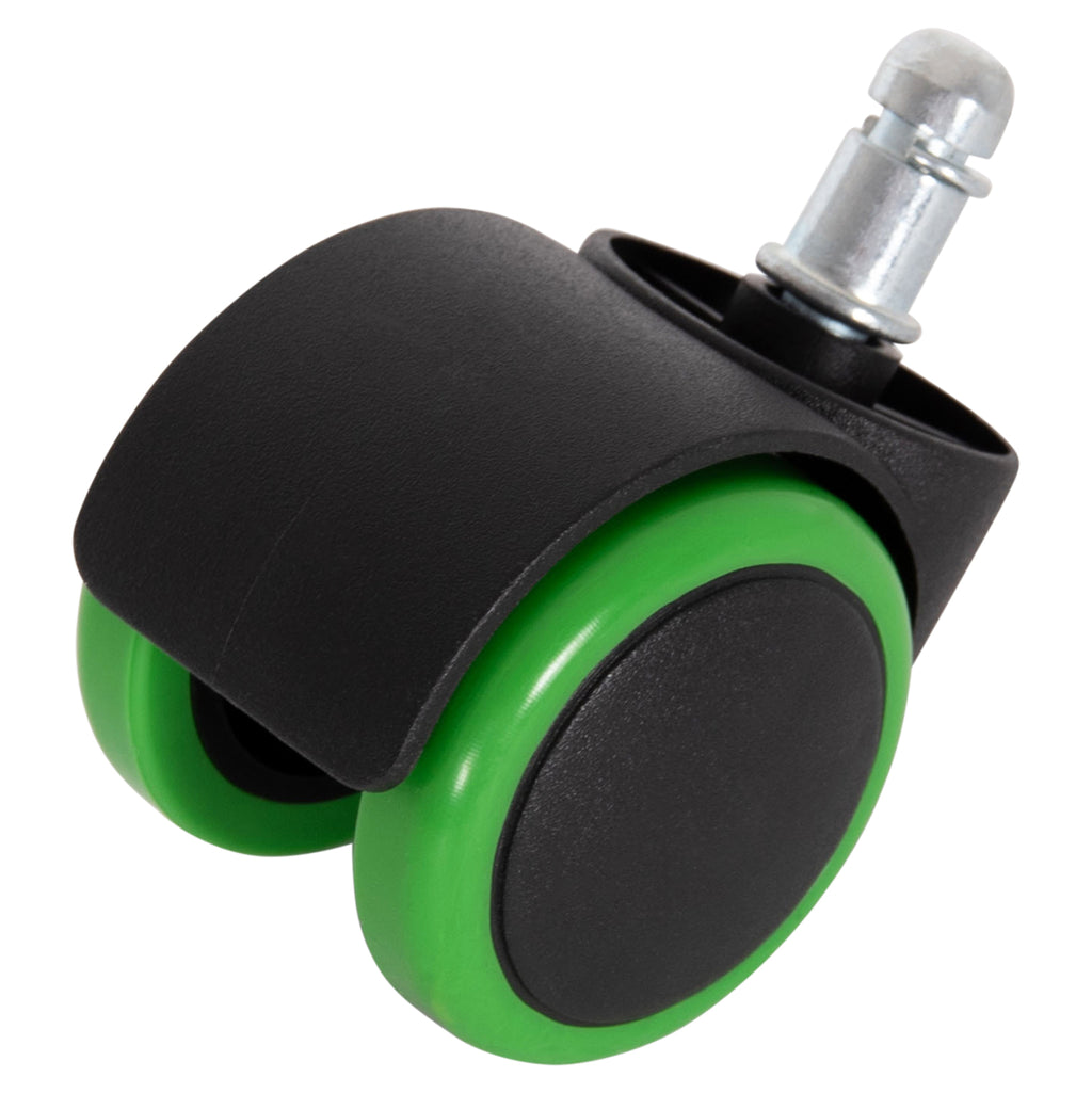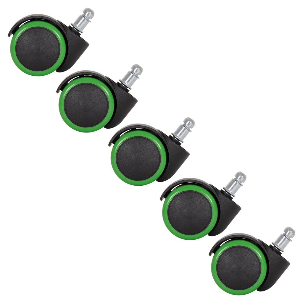 Резервни колелца за офис столове КГ1203 в черно със зелена ивица, в комплект от 5 броя.