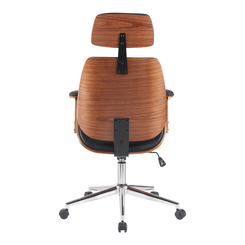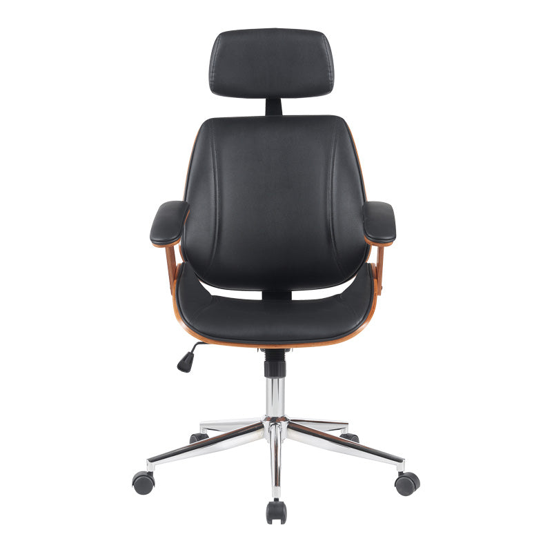 Повишете ергономичността и естетиката на вашия офис с луксозния директорски стол Fetseno. Проектиран за максимален комфорт и подкрепа по време на дълги работни часове, той разполага с висока облегалка с интегрирана облегалка за глава, която помага за облекчаване на напрежението във врата и раменете. Неговият елегантен външен вид подобрява вашето професионално пространство, което го прави идеалният избор за всеки взискателен ръководител. Технически спецификации: Висококачествени детайли от шперплат с покритие от орех Тапицирани с издръжлива черна PU кожа Предлага се в цветова комбинация черен орех Здрава метална рамка: оборудвана с издръжлива метална основа с пет звезди за лесно въртене и плавно движение във всички посоки Размери на продукта: Дължина: 53 см Ширина: 56 см Височина: 113,5-123,5 см Бележки: The продуктът се доставя несглобен във фабрична опаковка, заедно с подробно ръководство за сглобяване Цветът на продукта може леко да се различава от неговото фотографско представяне на вашия екран