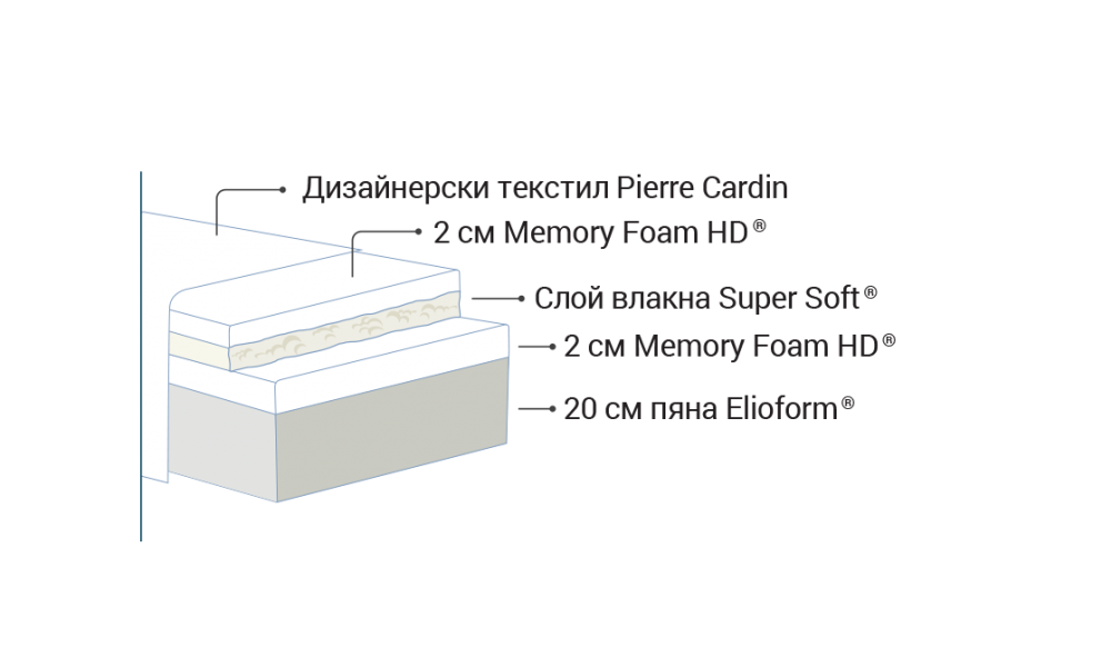 Среднотвърд от едната страна и по-мек от другата матрак с височина 26 см и впечатляващ дизайн на Pierre Cardin.