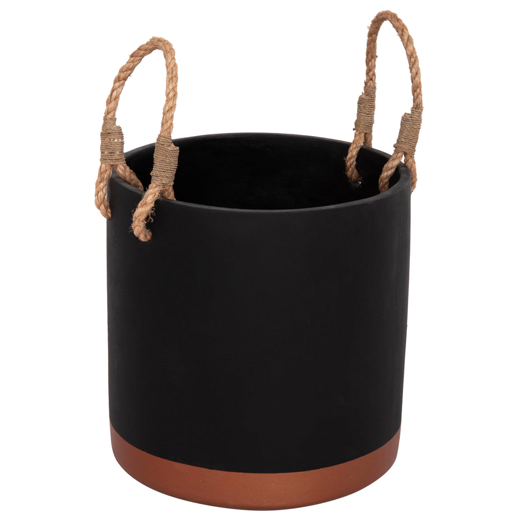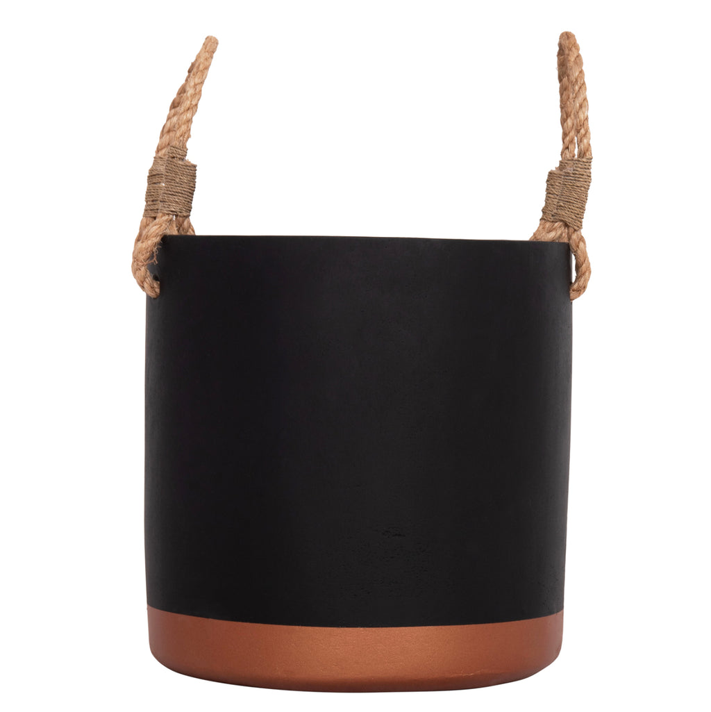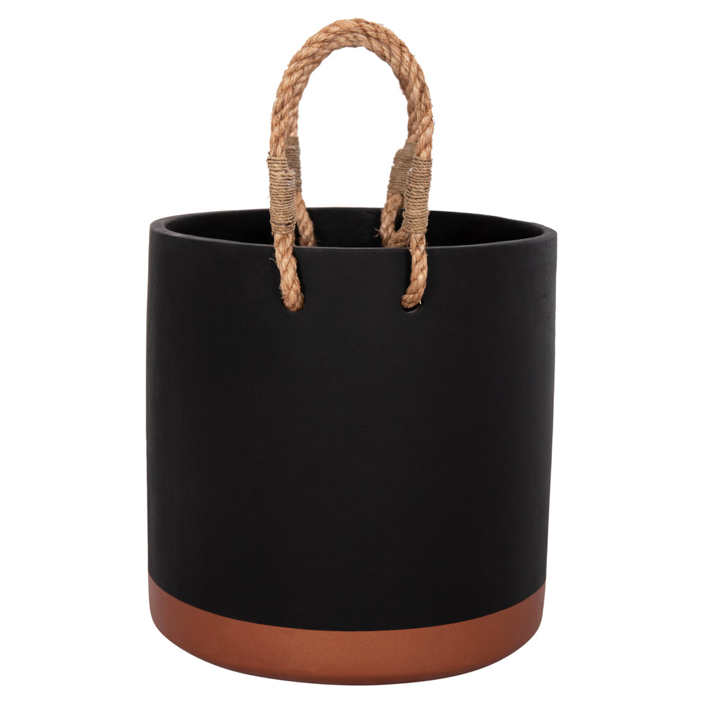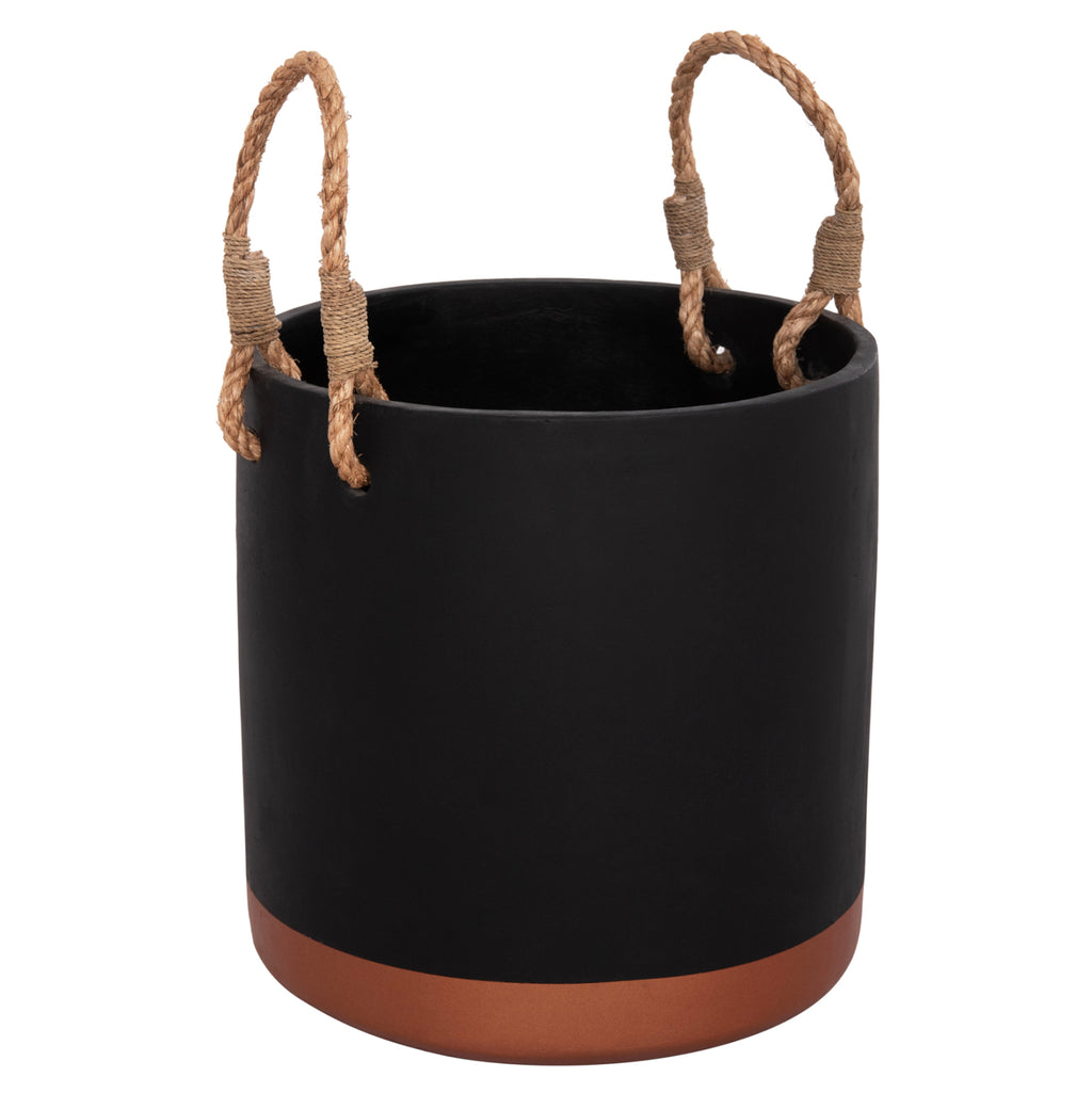 Саксията от серия TRYLL е изработена от фиброцимент в ЧЕРЕН цвят с БРОНЗОВА основа. Особеността им е, че имат дръжки, изработени от издръжливо въже за лесно транспортиране. *САМО ЗА УПОТРЕБА НА ЗАКРИТО* РАЗМЕРИ: Φ31x31H cm. СТРОИТЕЛНИ МАТЕРИАЛИ: Фиброциментът е композитен строителен материал, изработен от цимент, армиран с целулозни влакна. Известен е със своята издръжливост, устойчивост на гниене, вода и насекоми, което го прави избор с ниска поддръжка. Предимства: • Изисква минимална поддръжка и се почиства лесно. • Не е запалим. • Устойчивост на гниене и вредители. ПОДДРЪЖКА: Едно почистване с прах обикновено е достатъчно, но избягвайте използването на химически почистващи препарати. **Точното цветопредаване на продукта може леко да се различава от действителния продукт поради различни настройки на монитора.