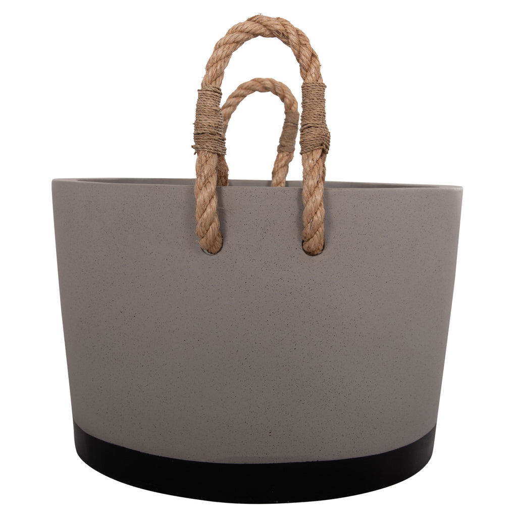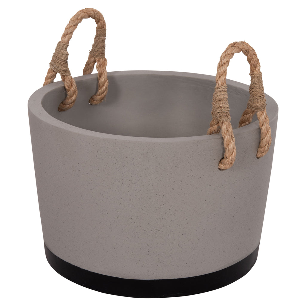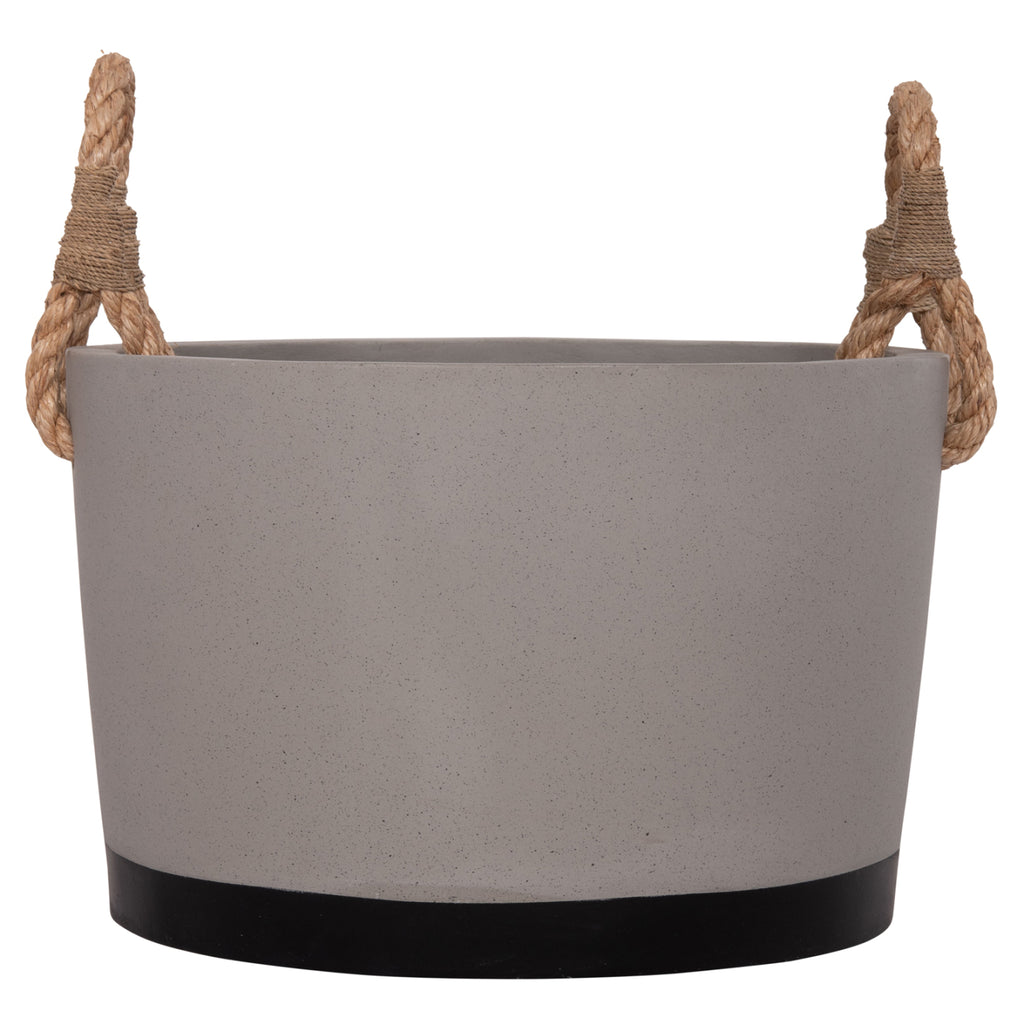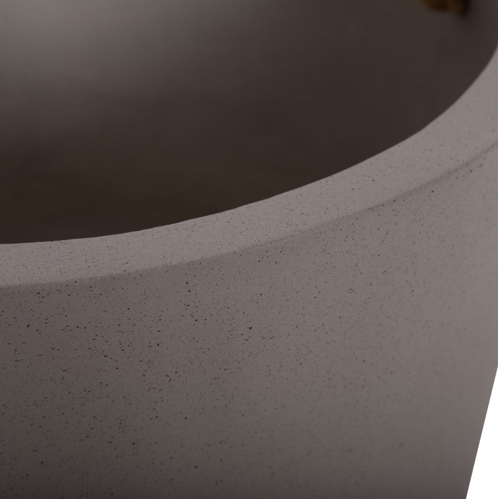 Саксията от серия TRYLL е изработена от фиброцимент в СИВ цвят с ЧЕРНА рамка на основата. Неговата особеност е, че имат дръжки, изработени от издръжливо въже за лесно транспортиране. *САМО ЗА УПОТРЕБА НА ЗАКРИТО* РАЗМЕРИ: Φ40x25.5H cm. СТРОИТЕЛНИ МАТЕРИАЛИ: Фиброциментът е композитен строителен материал, изработен от цимент, армиран с целулозни влакна. Известен е със своята издръжливост, устойчивост на гниене, вода и насекоми, което го прави избор с ниска поддръжка. Предимства: • Изисква минимална поддръжка и се почиства лесно. • Не е запалим. • Устойчивост на гниене и вредители. ПОДДРЪЖКА: Едно почистване с прах обикновено е достатъчно, но избягвайте използването на химически почистващи препарати. **Точното цветопредаване на продукта може леко да се различава от действителния продукт поради различни настройки на монитора.
