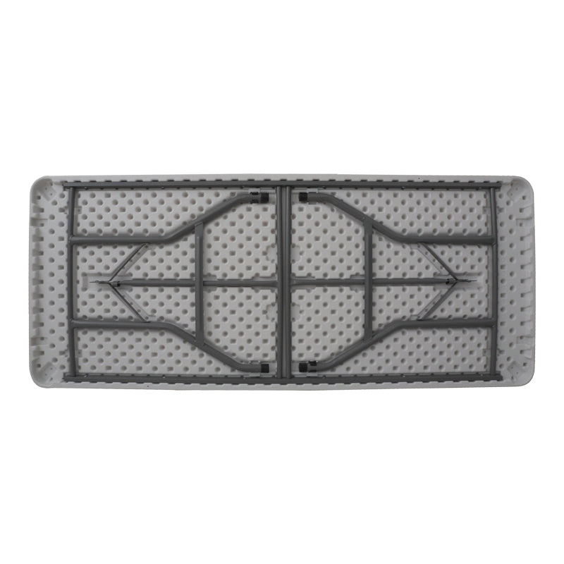 - Рамка: Подсилена метална рамка Ø25 мм – 1 мм, електростатично покрита, завършваща със сгъваема система от крака в сиво. Изключително устойчива на удар и много стабилна. Когато не се използва, краката се сгъват под масата, спестявайки място за лесно съхранение и транспорт.