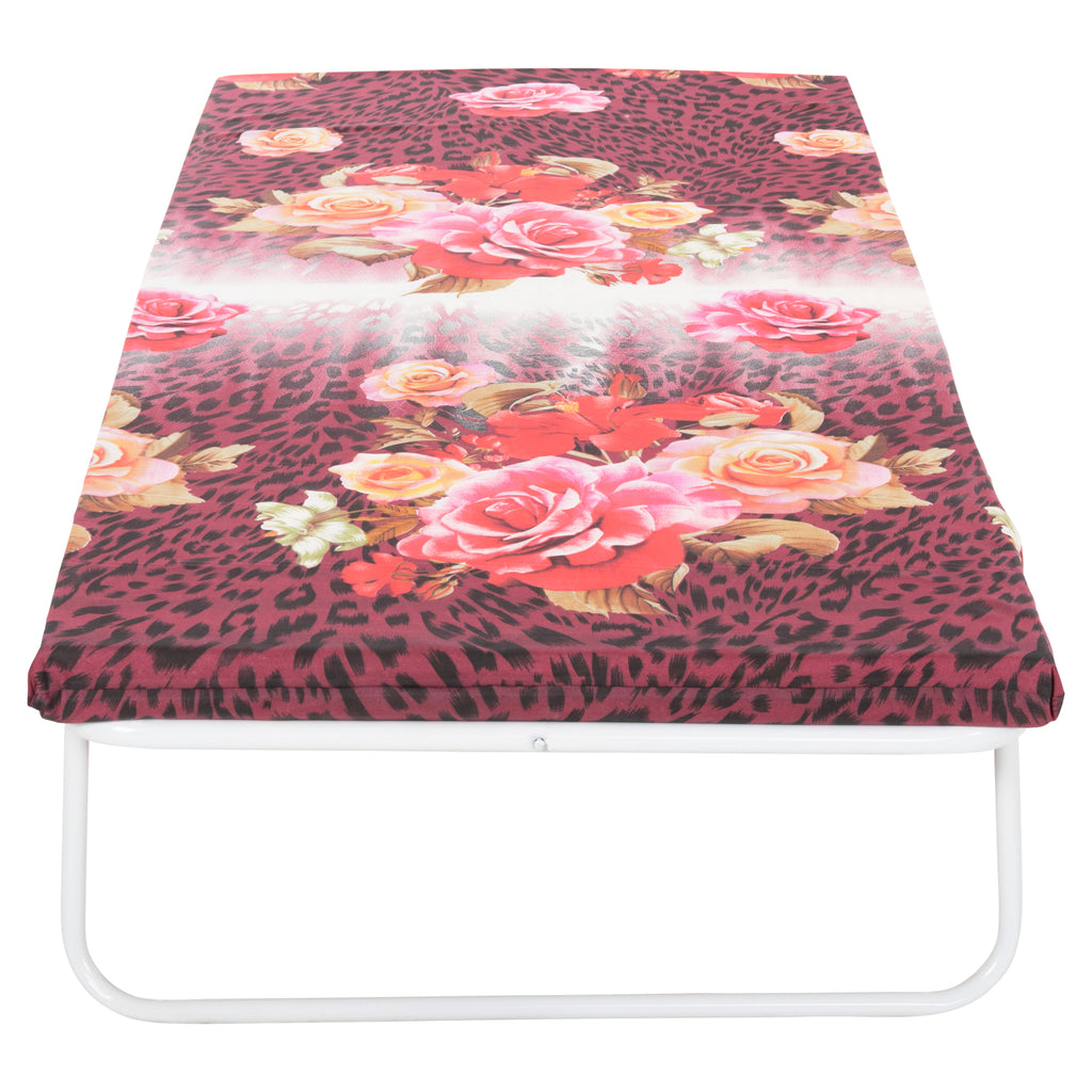 Легло - Куфар (къмпинг) Сгъваемо с анатомични дъски и желязна рамка. Сгъването се сгъва наполовина и става лесно за транспортиране и съхранение. Дунапренов матрак с дебелина 6 см в различни цветове. Размер на леглото: 186х80см. Цветът на възглавницата е ориентировъчен, а изборът на цвят е на случаен принцип.