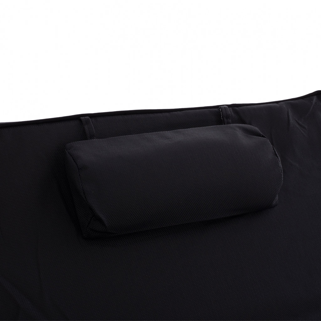 Шезлонг SIFNOS от текстил с плетка 2х1 и 600гр/м2, в черен нюанс. Професионално строителство. Идеален за дървени шезлонги. Цвят: Черен Размери: 72х194см. Дебелина: 11см. Размери на седалката: 72x114 см. Размери на гърба: 72х73см. Размери на възглавницата: 34х15 см.