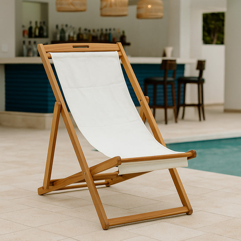* Конструкция от акациево дърво и pvc плат. Акацията е известна със своята издръжливост и специална естетика, което прави тази рамка идеална за използване на открити площи, като градини, тераси или вътрешни дворове. Неговите гладки покрития от естествено дърво подчертават естествените линии и текстура на дървото, предлагайки усещане за автентичност и приятна простота. PVC е устойчив на влага и атмосферни условия, което прави тези столове подходящи както за вътрешна, така и за външна употреба.