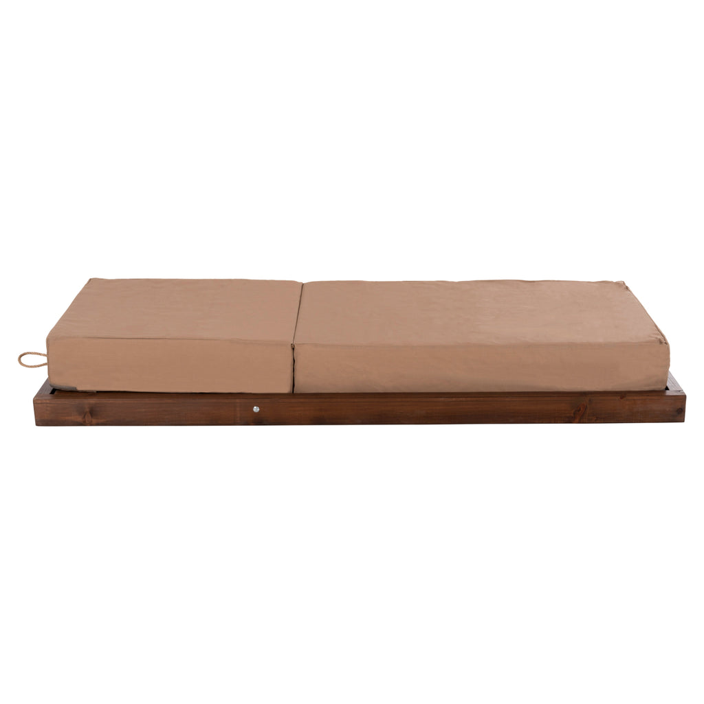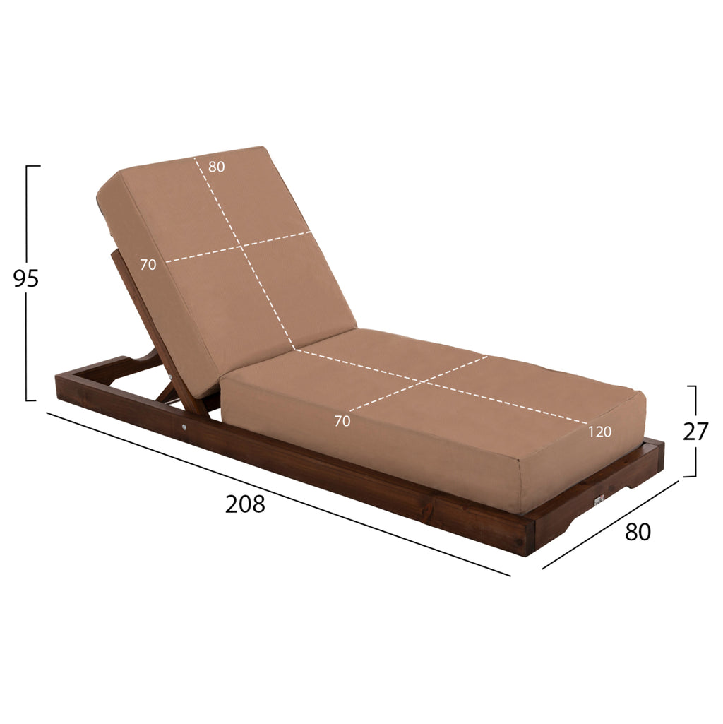 Професионалният плажен шезлонг IKARIA на нашата фирма в цвят орех е модерно и луксозно предложение за плажа. Може да се постави директно на земята, предлагайки несравнима релаксация, но пакетът включва и ниски крака/основи, ако желаете да преместите шезлонга на различен тип под. Дървената му конструкция я прави невероятно издръжлива и здрава, а текстилното платно MOKA, което покрива дебелия слой, пасва прекрасно на рамката от орех. Стълбата има 5 позиции на накланяне и в комбинация с големите си размери предлага всичко, което искате от един луксозен плажен шезлонг. РАЗМЕРИ: 80x208x27-95Y см. Допълнителна височина на крачола: 5 см. Размери на матрака: 70х200 см. Дебелина на възглавницата: 20см. Спецификации на стълбата: метален прът от неръждаема стомана Φ10, който се заключва във вдлъбнати позиции в рамката. МАТЕРИАЛИ НА ИЗРАБОТКА: Целият шезлонг е изработен от борова дървесина с импрегниране и допълнителен слой воден лак. Борът е мека, бяла или бледожълта дървесина, която е лека и с права структура. Устойчив на свиване, подуване и огъване. Импрегнирането в най-широк смисъл е оцветяване на дърво (обикновено лакове) по метода на потапяне. Подплатата на матрака е изработена от водоустойчива подсилена текстилна материя. Това е дебел, здрав и издръжлив полиестерен плат. Това означава, че е изработен от полиестерни нишки, изтъкани от край до край, и е покрит с PVC. ПОДДРЪЖКА: Ключът към поддържането на шезлонга да изглежда като нов в продължение на много години е редовното му почистване с влажна кърпа, за да се премахне всякаква сол, въпреки че конструкцията му с воден лак го прави особено издръжлив. ** Цветопредаването на продукта може леко да се различава от неговото фотографско представяне на вашия екран. Гръцко производство