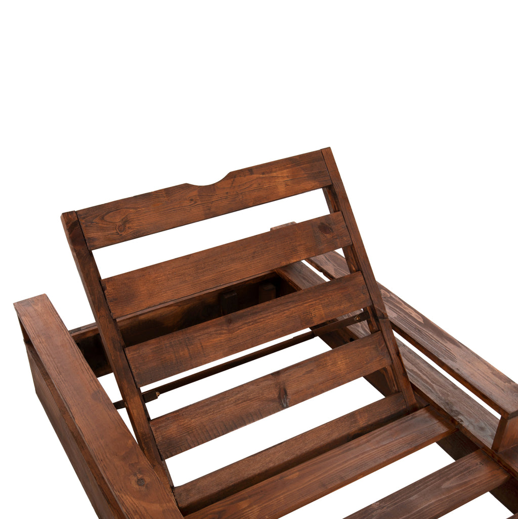 Фирменият ни професионален шезлонг MACEDONIA в цвят ОРЕХ е модерно и луксозно предложение за плажа. Опира се на 4 много ниски крака в 4-те ъгъла и има периметърни "престилки". Допълнителната характеристика на този шезлонг са изключително широките рамена, които има, които му придават усещане за лукс и комфорт. Стълбата има 5 позиции на накланяне и в комбинация с големите си размери предлага всичко, което искате от един луксозен плажен шезлонг. РАЗМЕРИ: 200х92х23,5-73Н см. Височина на ръцете: 36 см. Височина на крака: 3см. Спецификации на стълбата: метален прът от неръждаема стомана Φ10, който се заключва във вдлъбнати позиции в рамката. МАТЕРИАЛИ НА ИЗРАБОТКА: Целият шезлонг е изработен от импрегнирана борова дървесина. Борът е мека, бяла или бледожълта дървесина, която е лека и с права структура. Устойчив на свиване, подуване и огъване. Импрегнирането в най-широк смисъл е оцветяване на дърво (обикновено лакове) по метода на потапяне. ПОДДРЪЖКА: Ключът към поддържането на солариума да изглежда като нов в продължение на много години е редовното му почистване с влажна кърпа за отстраняване на солта, въпреки че накисването го прави особено издръжлив. ** Цветопредаването на продукта може леко да се различава от неговото фотографско представяне на вашия екран. Продуктът е произведен в Гърция и се изработва по поръчка.