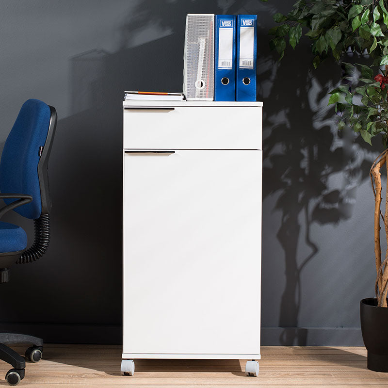Шкаф на колела Chad с бяло гланцово чекмедже 50x40x100 см