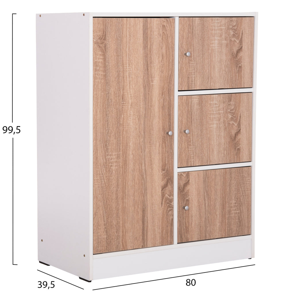 Шкаф MATIN Дъб Сонома-Бял 80x39.5x99.5 см - Компактен Нисък Шкаф с 4 Отделения