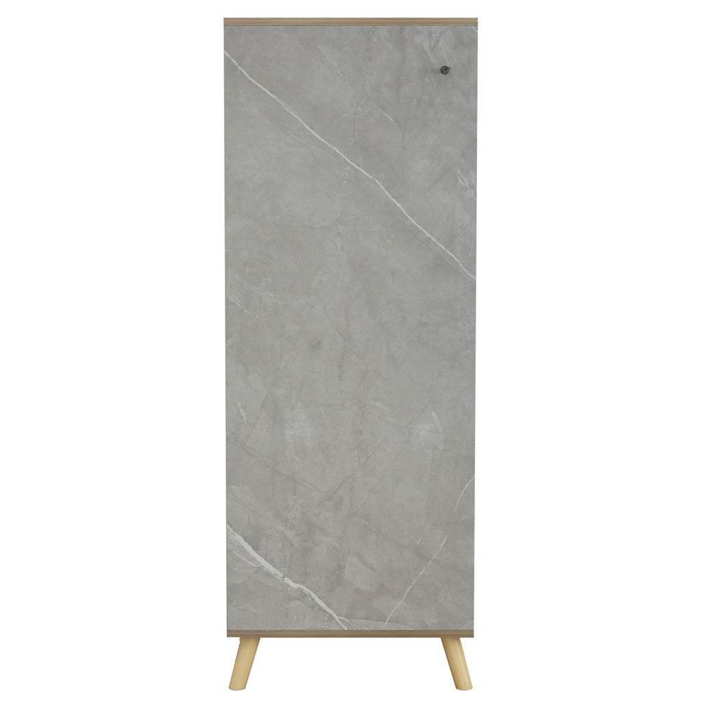 Представяме ви меламинова кутия-шкаф за обувки ALVARO в цвят SONAMA. Това е сравнително висок шкаф с 1 врата с каменна текстура в сивкав тон. Краката са дървени и високи, а вътре има 7 рафта (т.е. 8 нива на поставяне). Нашата цел е да ви помогнем да организирате и подобрите по най-добрия възможен начин всичко, което искате. ТЕХНИЧЕСКИ ХАРАКТЕРИСТИКИ: Габаритни размери: 50х38х135см. Височина на крака: 15 см. Височина на рафтовете: 13,5 см. МАТЕРИАЛ ЗА ИЗРАБОТКА: Шкафът-гардероб е изработен изцяло от 15мм меламин. Меламинът е синтетичен материал, много издръжлив и с голяма твърдост, под формата на листове, които след това се трансформират в ПДЧ чрез пресоване. Краката на шкафа за обувки са изработени от лакирано евкалиптово дърво. Евкалиптът е твърда дървесина, която се счита за една от устойчивите дървесини, които са полезни и екологични. Освен че е абсолютно привлекателна, тази дървесина има много общи свойства с подобни твърди дървесини. Той е много здрав и има висока плътност. Въпреки това е лесен за "работа". Действителният му цвят варира от червеникаво до розово. ПОДДРЪЖКА: Шкафът за обувки е лесен за поддръжка. Неговата меламинова конструкция му позволява да бъде устойчив на абразия, драскотини и петна. Освен това се почиства лесно с влажна кърпа. *Продуктът се доставя несглобен във фабрична опаковка ** Цветопредаването на продукта може леко да се различава от фотографското изображение на вашия екран.